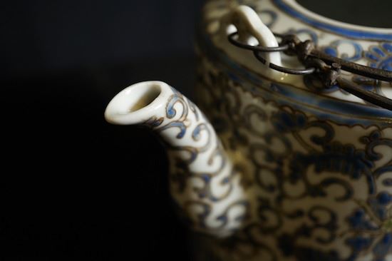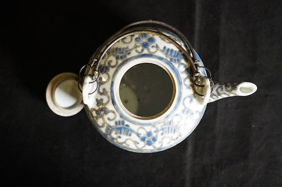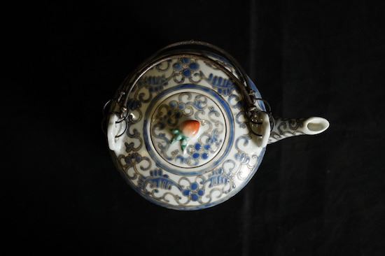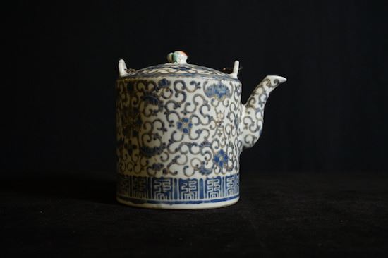 Early 20th Century, Blue-and-white teapot, outside pattern of "Flora" and "Shou"