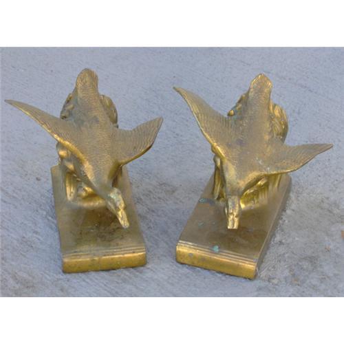 This set of brass bookends is impressive! They are of early 20th century vintage and are of geese in flight.</em></td>