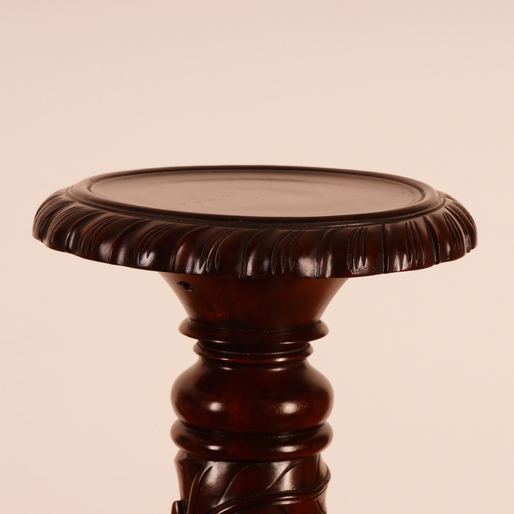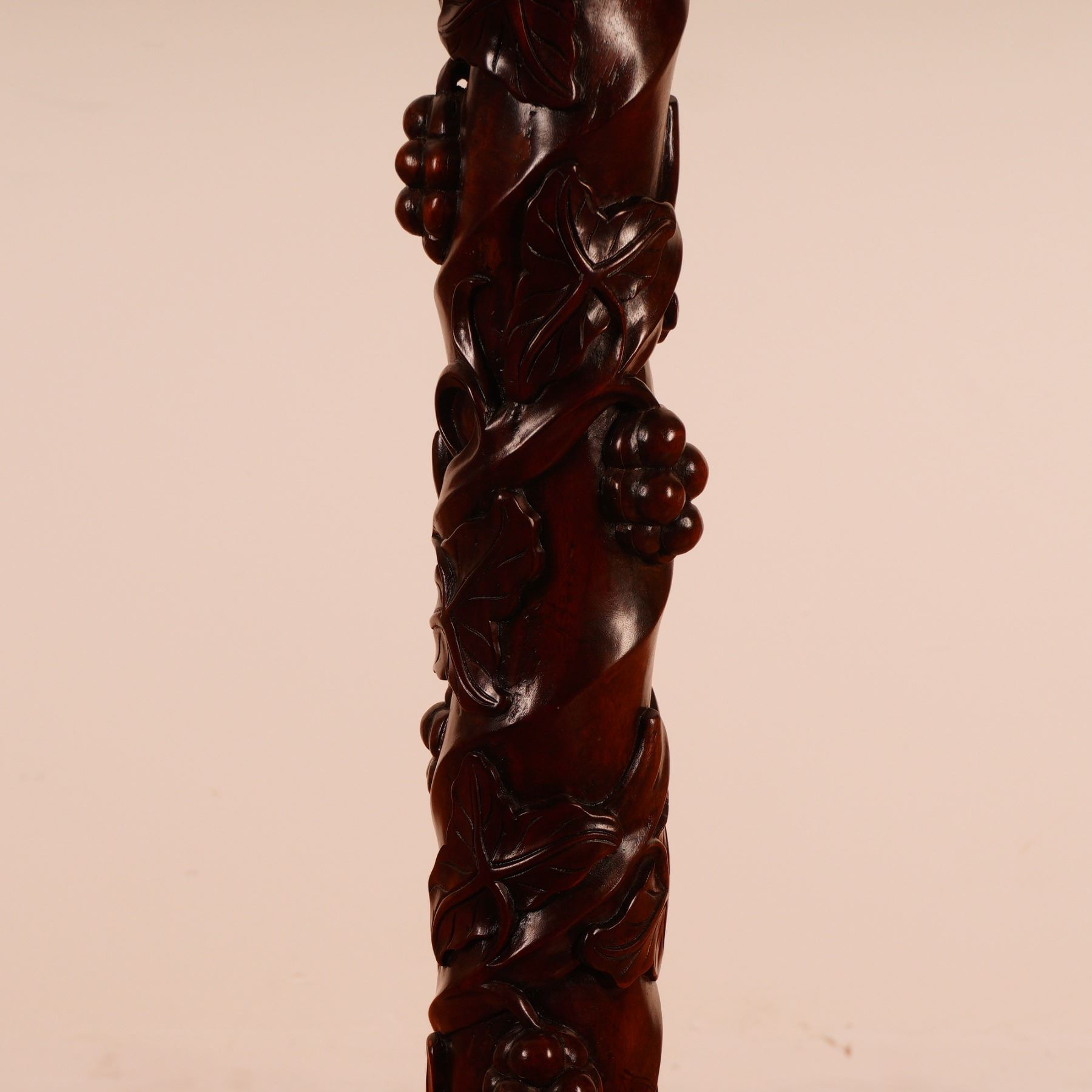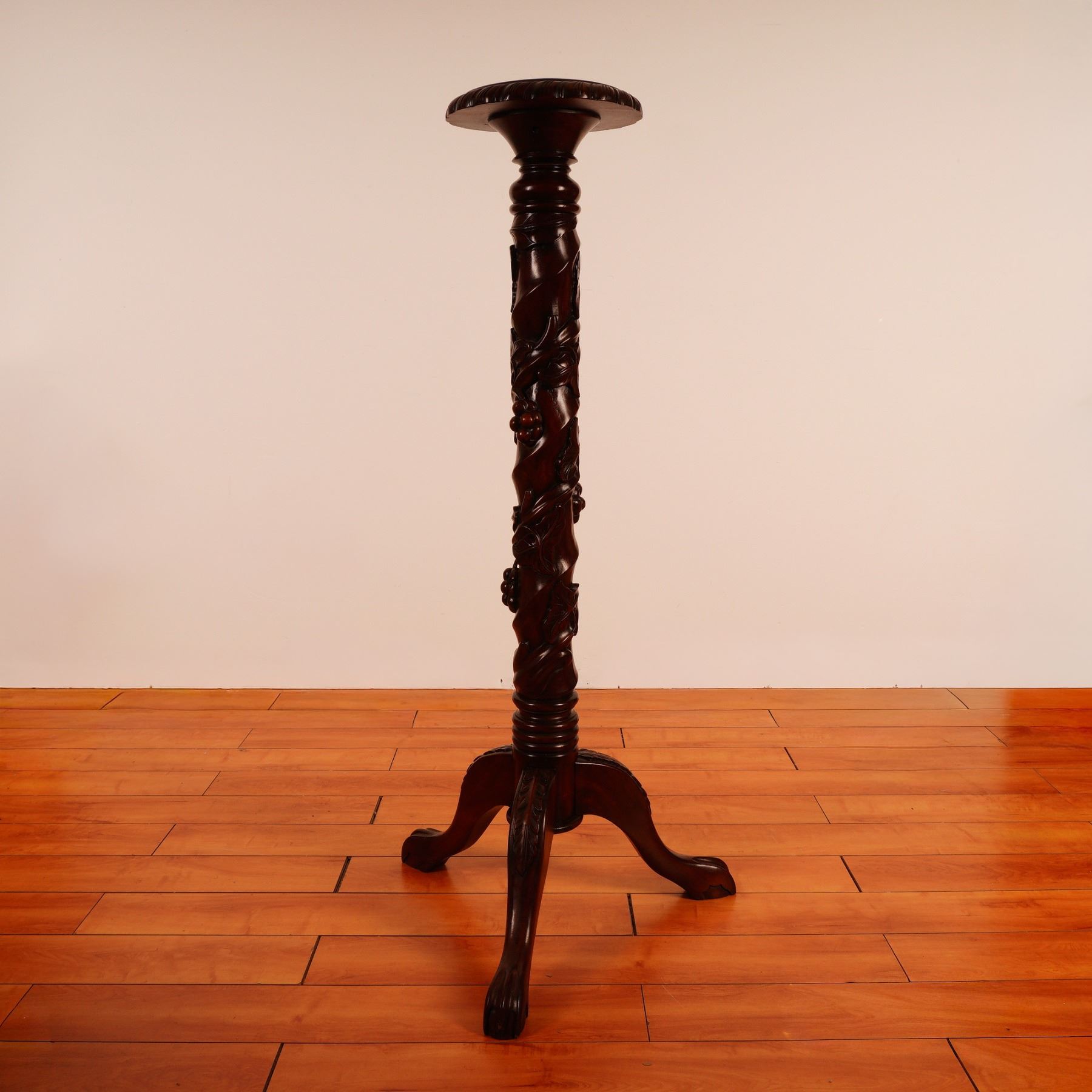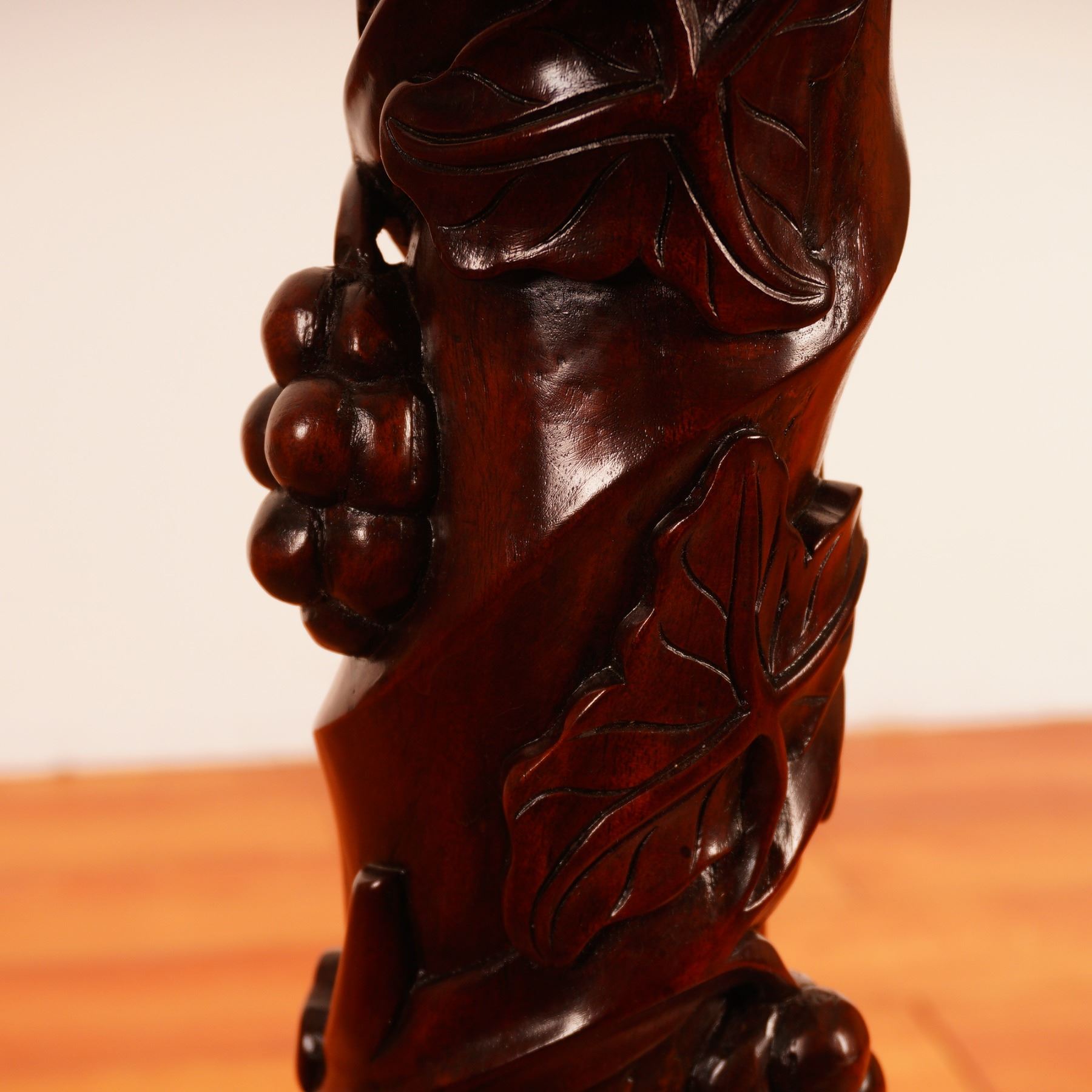 Early 20th Century Carved Mahogany Pedestal Stand with Grape and Leaf Motif