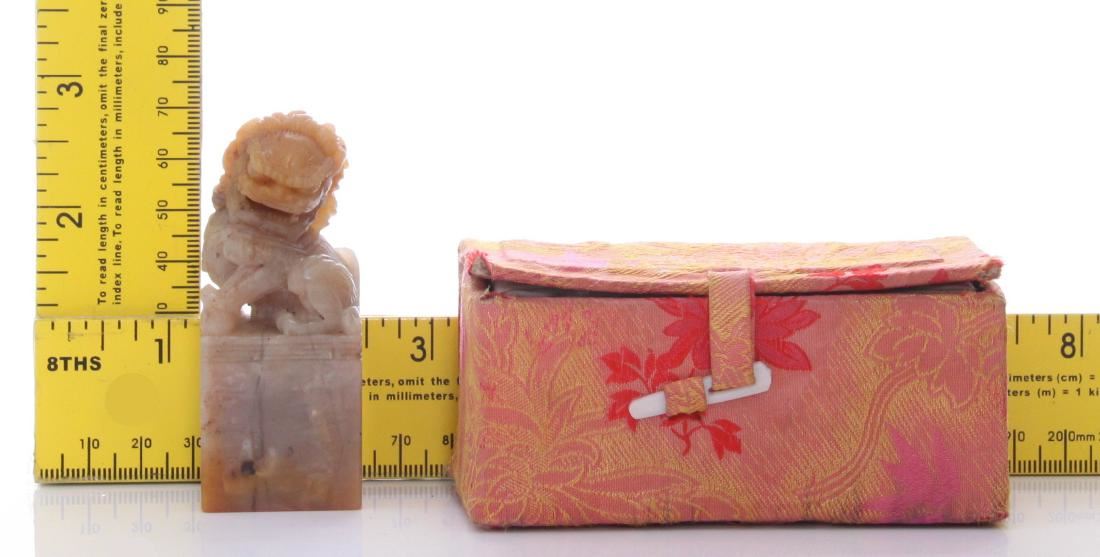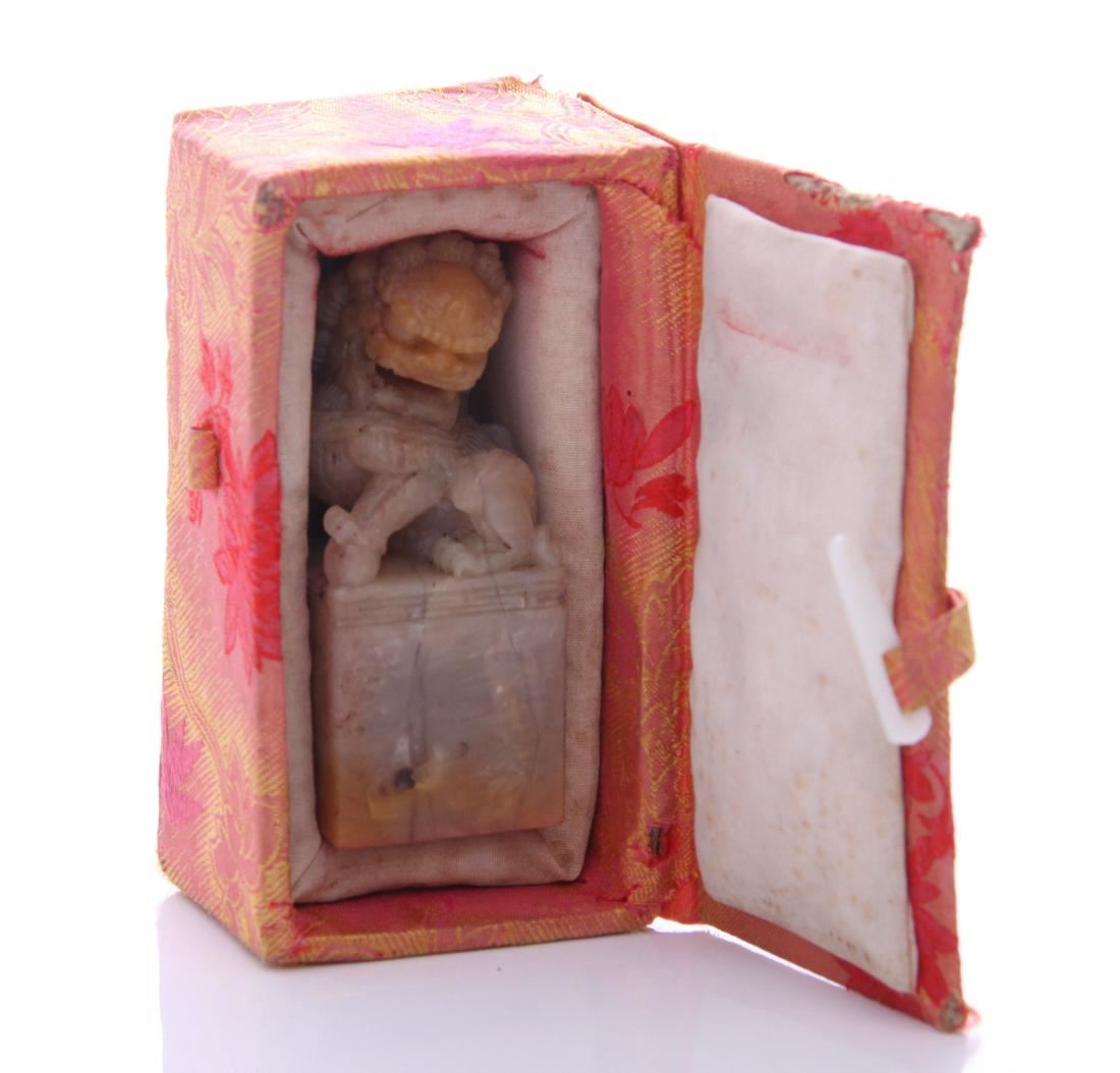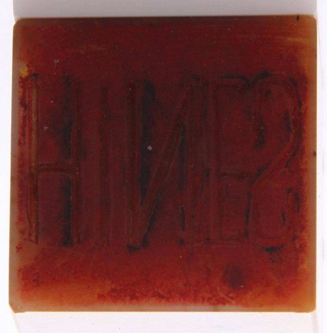 Early 20th Century Chinese Foo Dog stamper for the last name "Hines". This is a remarkable stone carving. Estimated more than 50 yrs old. Chinese art is visual art that, whether ancient or modern. Early "stone age art" dates back to 10,000 BC, mostly consisting of simple pottery and sculptures. Chinese art has arguably the oldest continuous tradition in the world. Traditional Chinese painting involves essentially the same techniques as Chinese calligraphy and is done with a brush dipped in black or colored ink. As with calligraphy, the most popular materials on which paintings are made of paper and silk. Chinese ritual sculptures from the Shang and Western Zhou Dynasties come from a period of over a thousand years from c. 1500 and were cast with complex patterns and zoomorphic decoration, but avoid the human figure. Smaller figures in pottery or wood were placed in tombs for many centuries afterwards, reaching a peak of quality in the Tang Dynasty. Small Buddhist figures and groups were produced to a very high quality in a range of media, as was relief decoration of all sorts of objects, especially in metalwork and jade. Sculptors of all sorts were regarded as artisans and very few names are recorded. Chinese ceramic ware shows a continuous development since the pre-dynastic periods, and is one of the most significant forms of Chinese art. Most later Chinese ceramics, even of the finest quality, were made on an industrial scale, thus very few individual potters or painters are known. Many of the most renowned workshops were owned by or reserved for the Emperor, and large quantities of ceramics were exported as diplomatic gifts or for trade from an early date. (Wikipedia) Size: See Ruler Photo. (Photos Represent The Condition Of The Lot.)