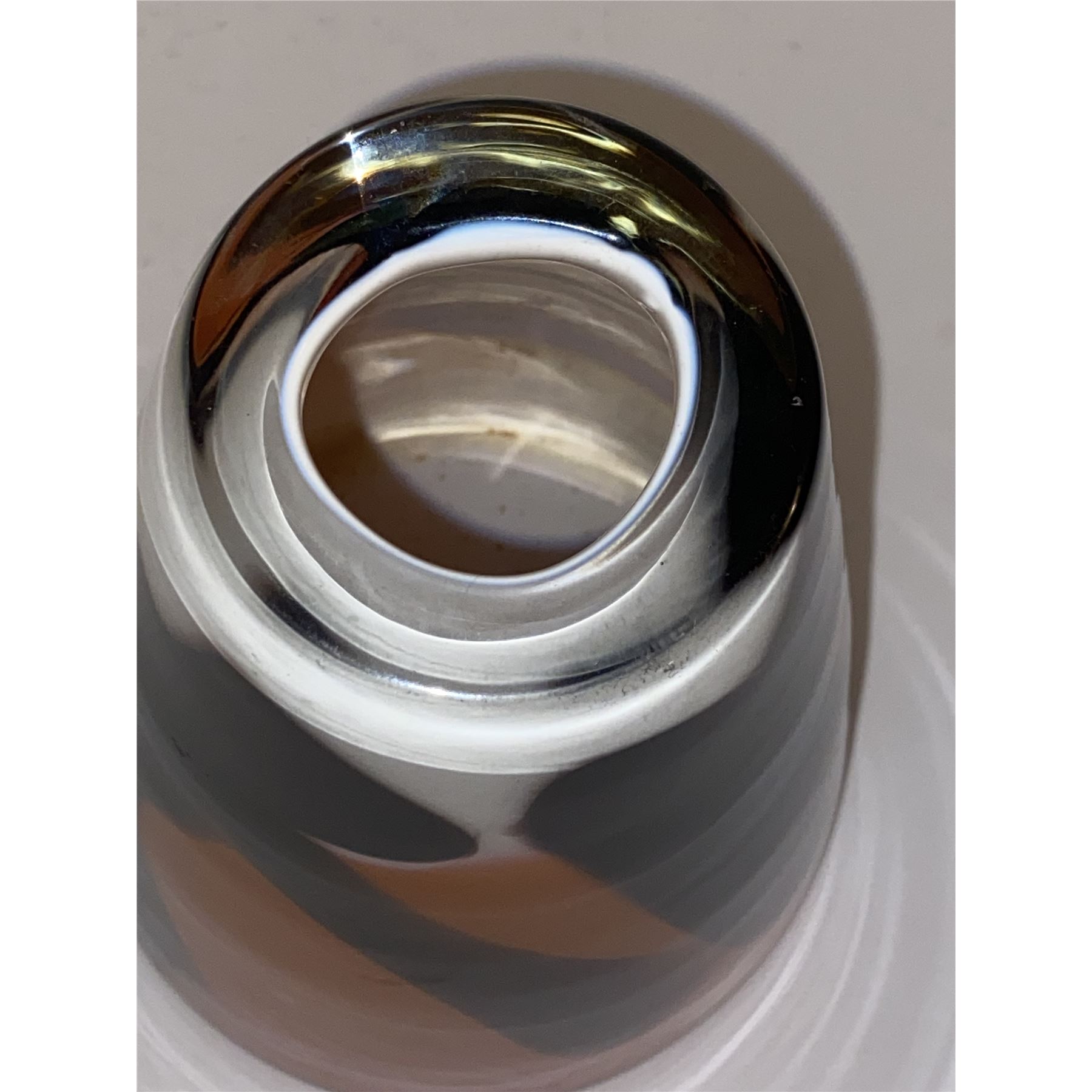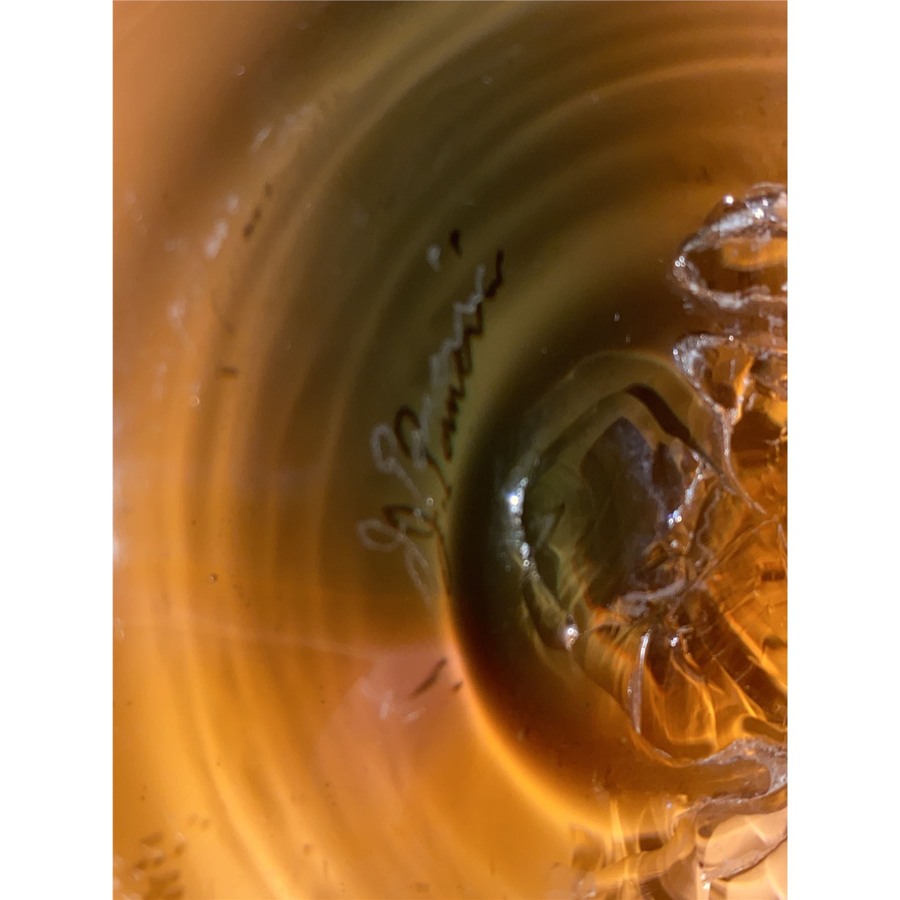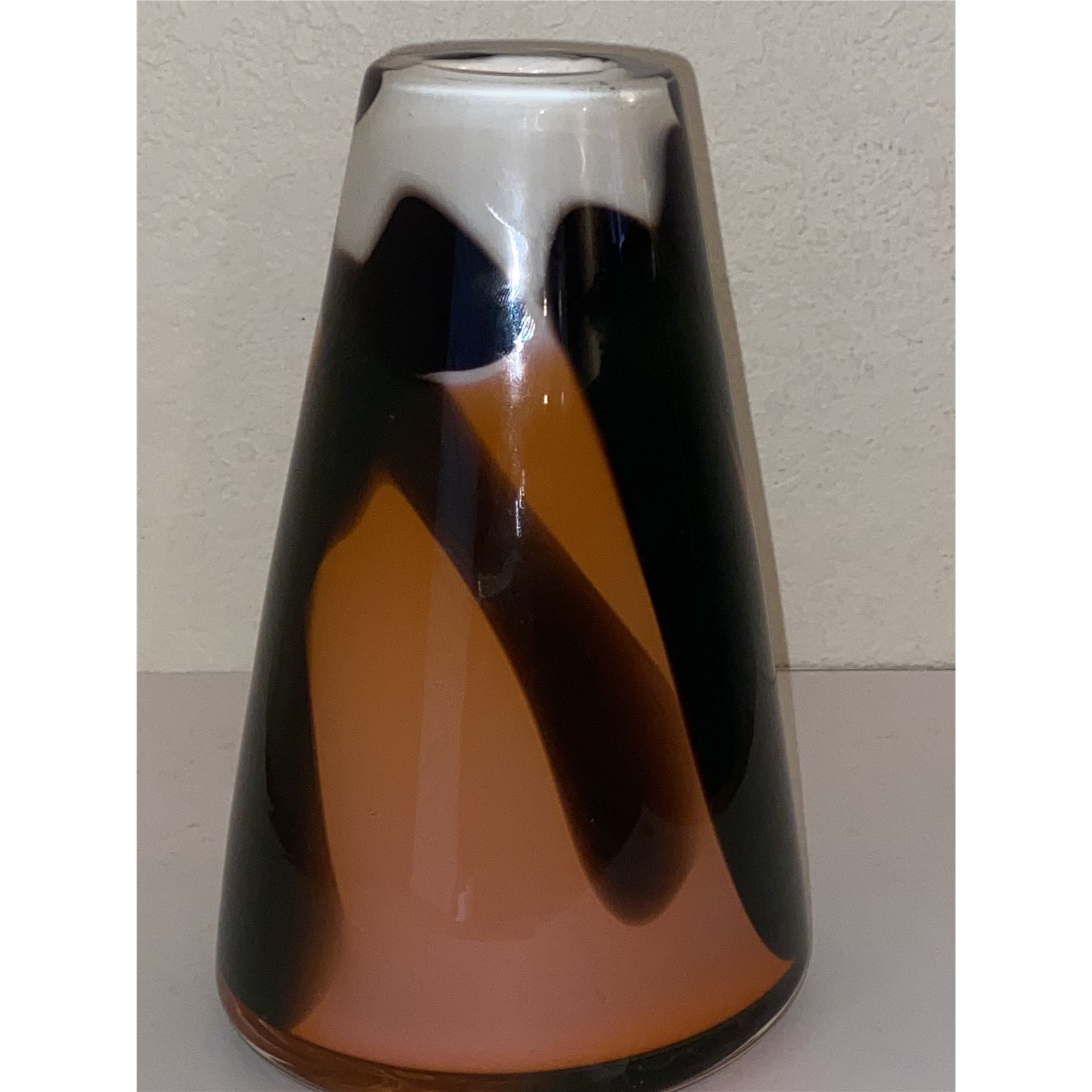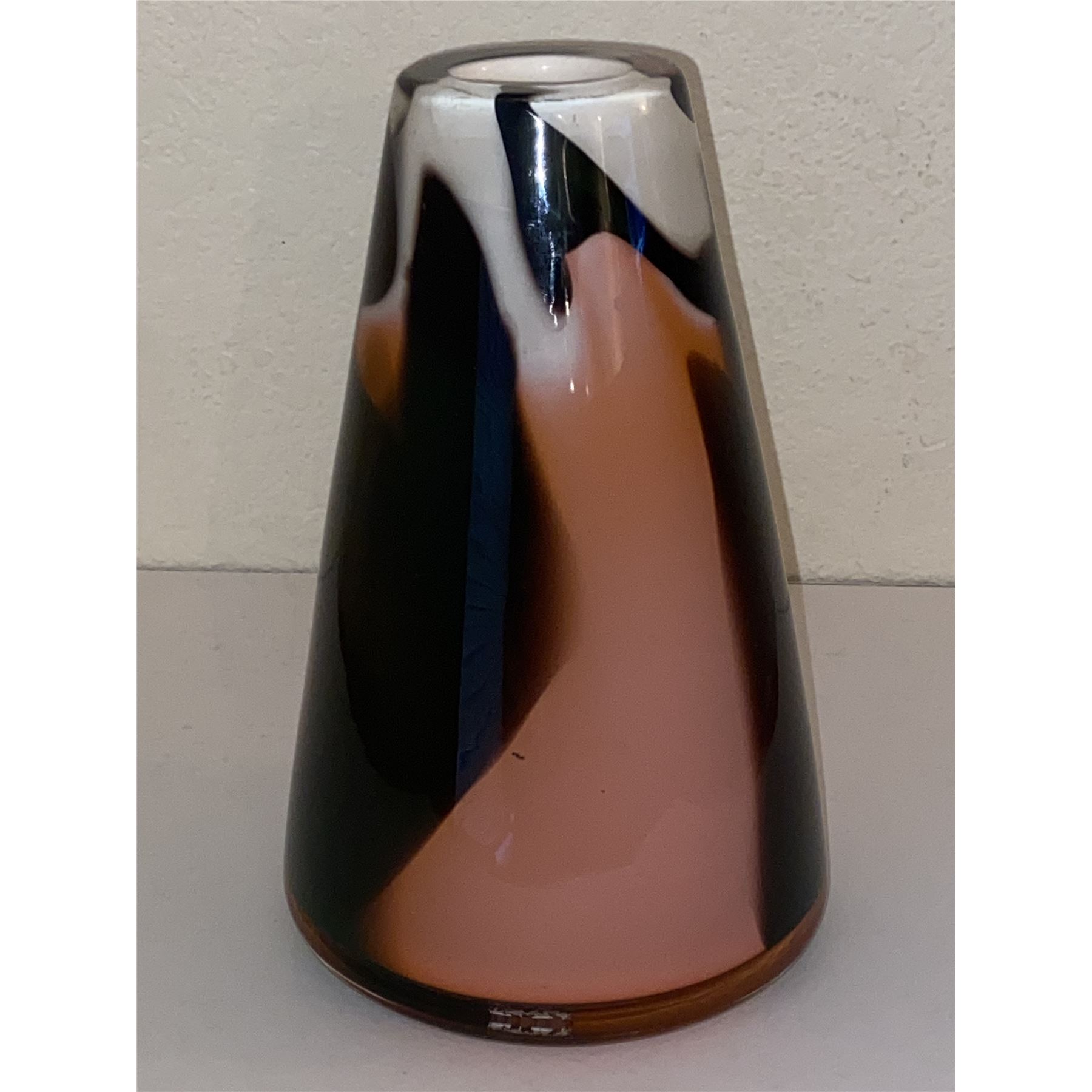 Hand blown vase signed. Dimensions: 9'tall, 5.5" base, 2.5" top diameter