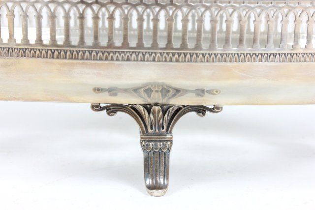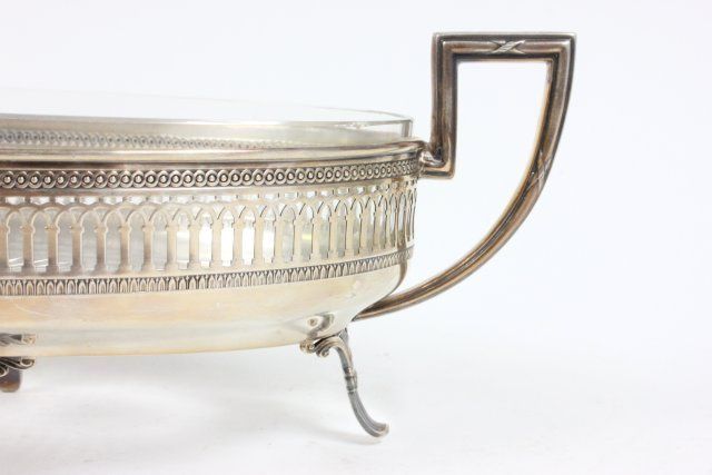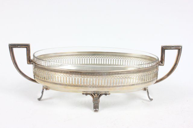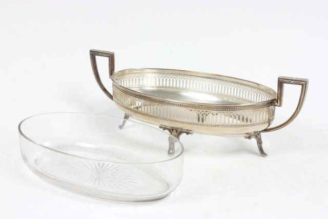 With glass insert, sold by KLE. Approx. 9 ozt, 13.25" W x 5.75" D x 4.75" H.