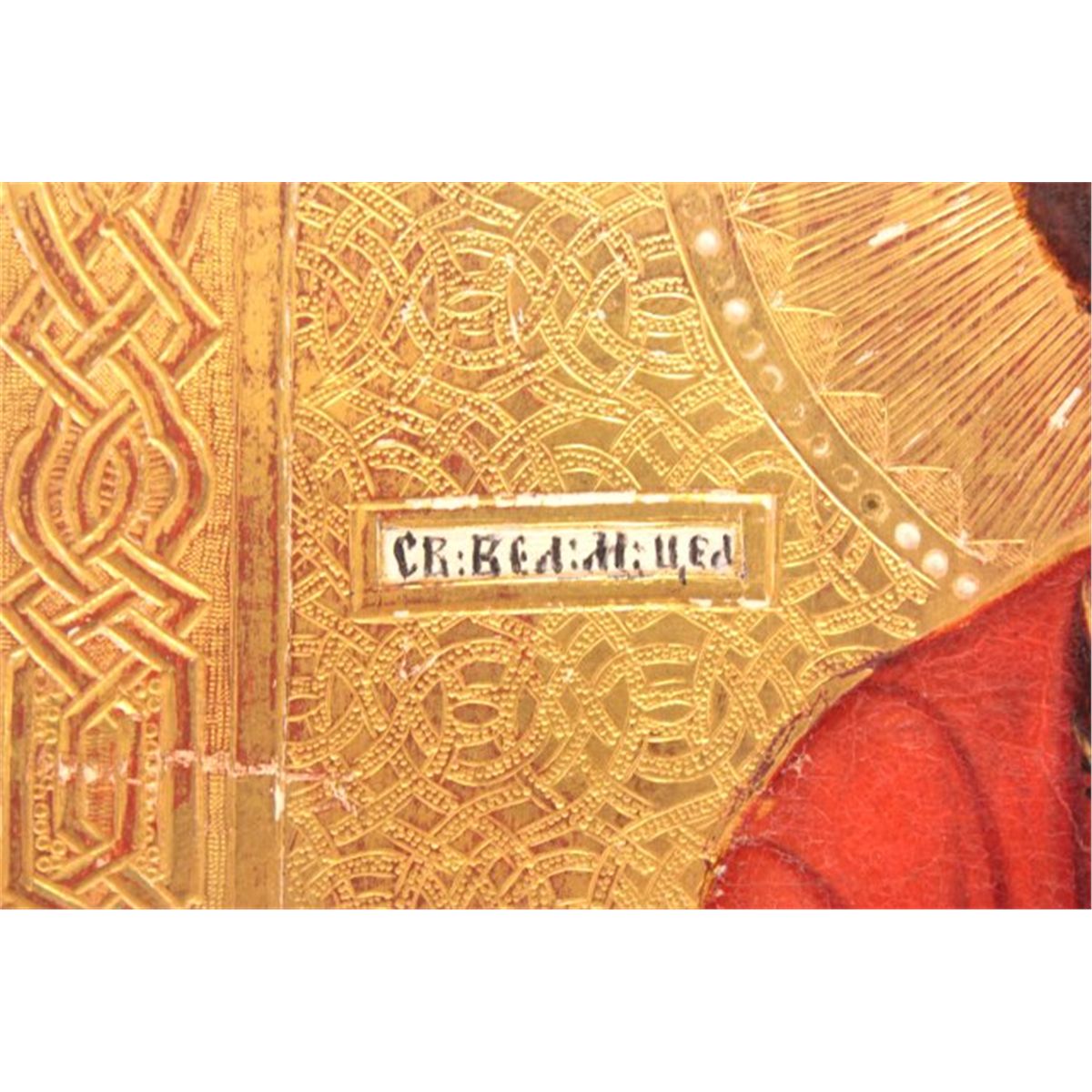 On gilt wood.  Approx. 8.75 x 7". Please read our terms of sale.