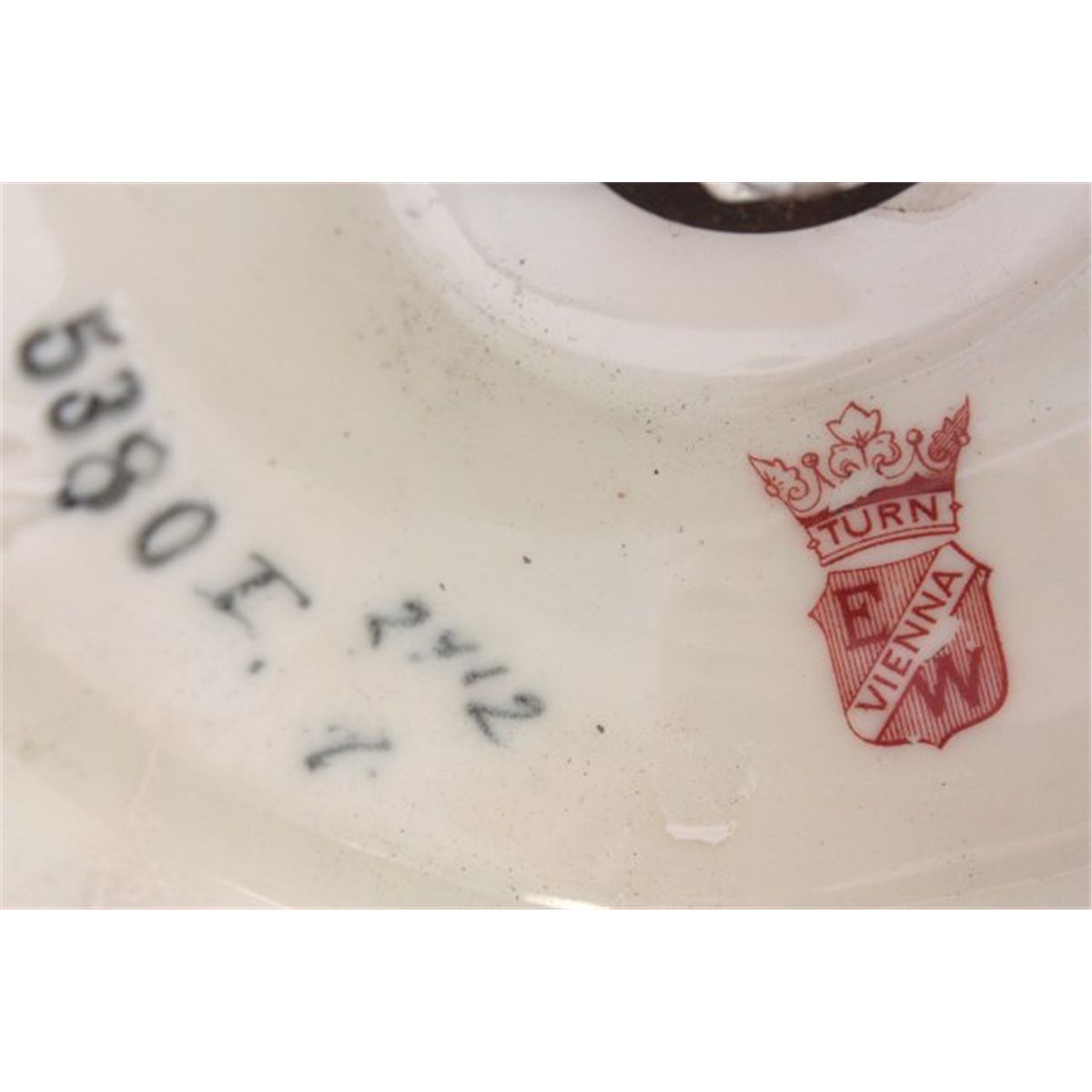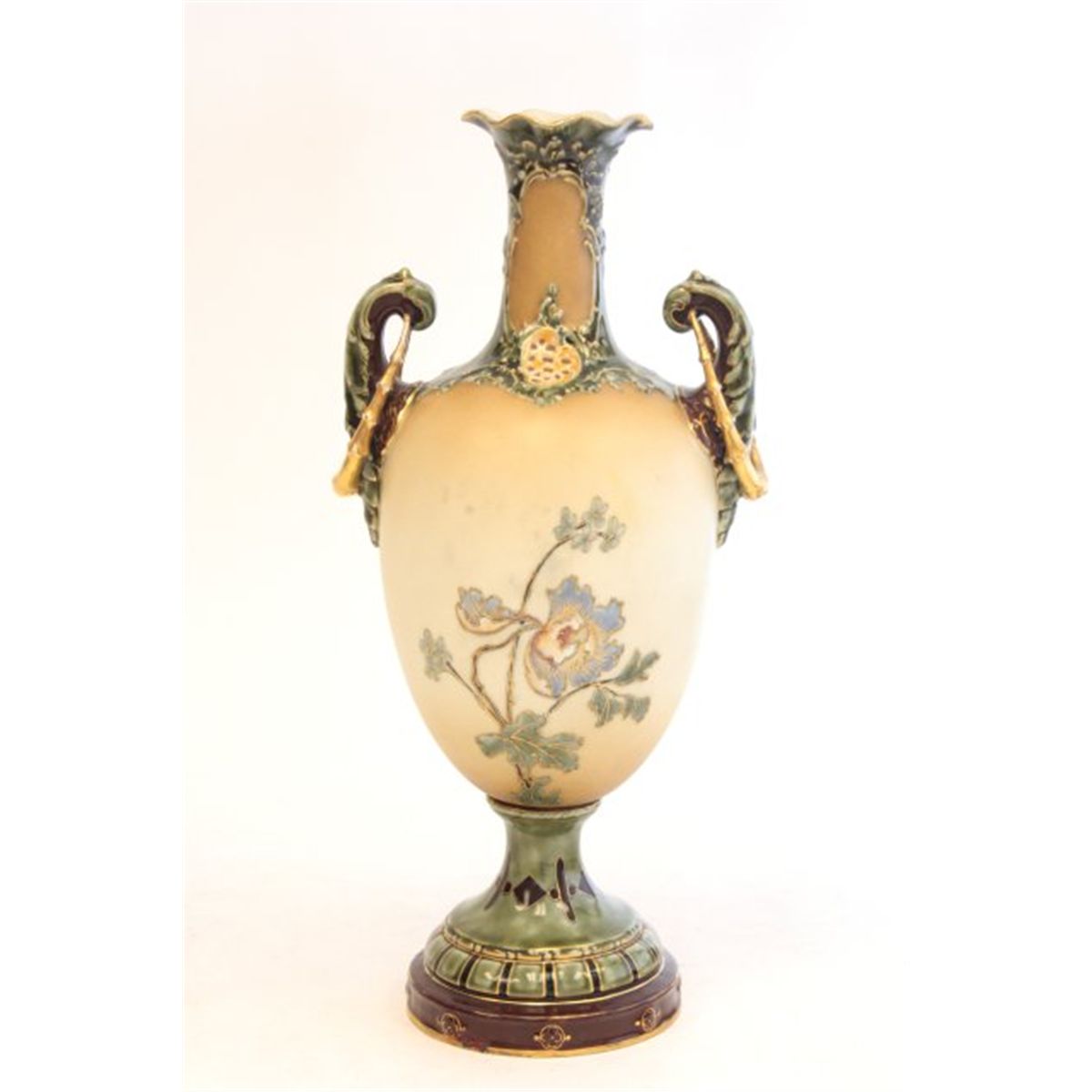 With raised enamel flowers with gilding, stamp on bottom. Repaired. Approx. 18.25" H x 9.5" W. Please read our terms of sale.