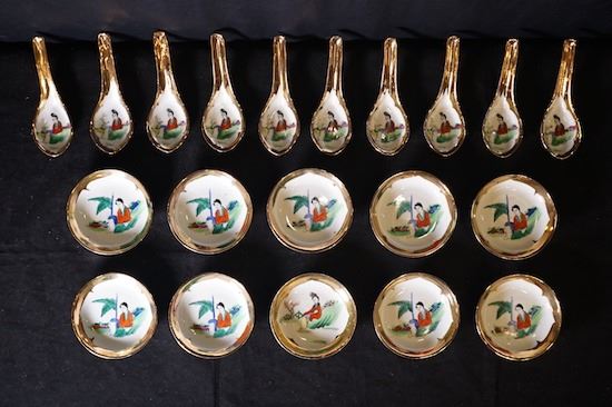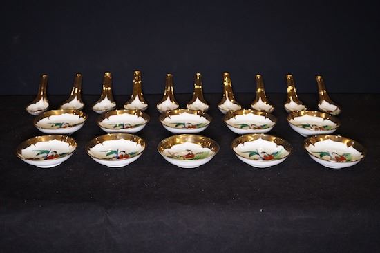 Early 20th century, gold plating "Figures" 10 for small dishes and 10 for spoon u o
