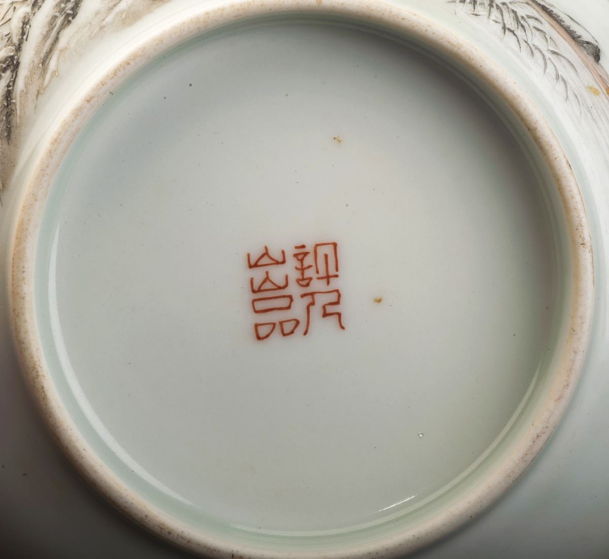 A Fine Porcelain Seal Box With Nice Matched Cover. Round Shape. Painted With Features Of Friends Together And Beautiful Mountains Landscape. Nice Carved Sculpture On The Surface. Attributed To RepublicPeriod(1911-1945). With Hexuren Marks On The Bottom.
