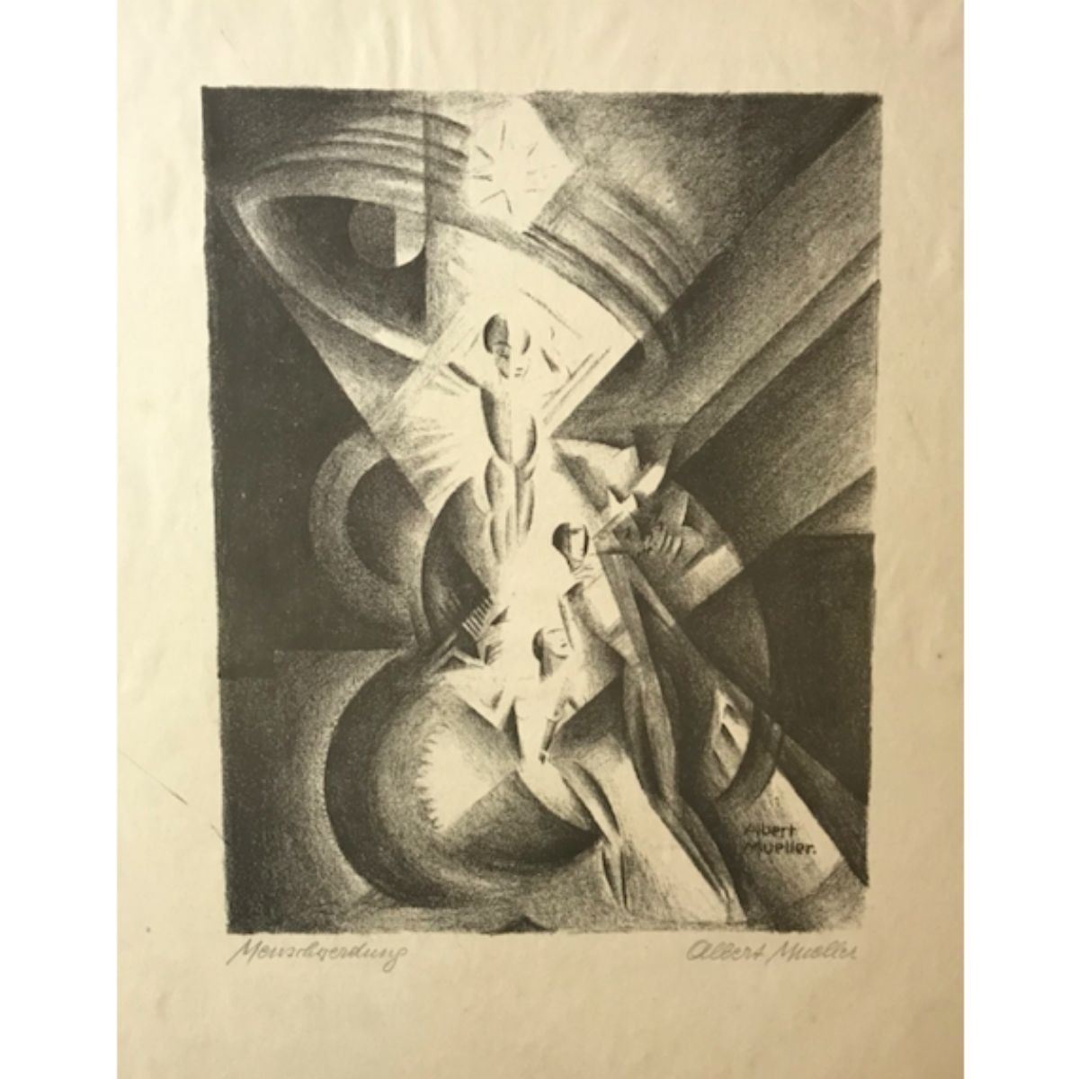 Ephemera - SignaturesEarly 20thc (c.1919) Lithograph, signed Albert Mueller, (1884-1963, German ) pencil titled left lower margin, pencil signed lower right margin. 14" X 18". * tear to the top center margin that will not affect the etching once framed. Biography from Michael Zeller - 1884 Schwandorf - 1963 Bremen. The central figure of classical modernism in southwestern Germany. Studied at the Munich & Stuttgart Academy, master student of A. Holzel. Along with his fellow W. Baumeister & O. Schlemmer, he founded in 1919 the avant-garde "Uecht Group". From 1924 was a member of the "Stuttgarter Secession". Albert Mueller is dedicated in the 1930s, mainly the production of works on paper, "Mueller takes over these years to a very picturesque resolved style in which probably influences the own teaching [at the State School of Applied Arts in Stuttgart; make note of the author] to his artistic works as well under the then-emerging work there are very many portraits of women, also representations of his own wife "(quoted in Schlichtenmaier / Klee,... 'Albert Mueller - life and work', Stuttgart 1992 S . 216). Â