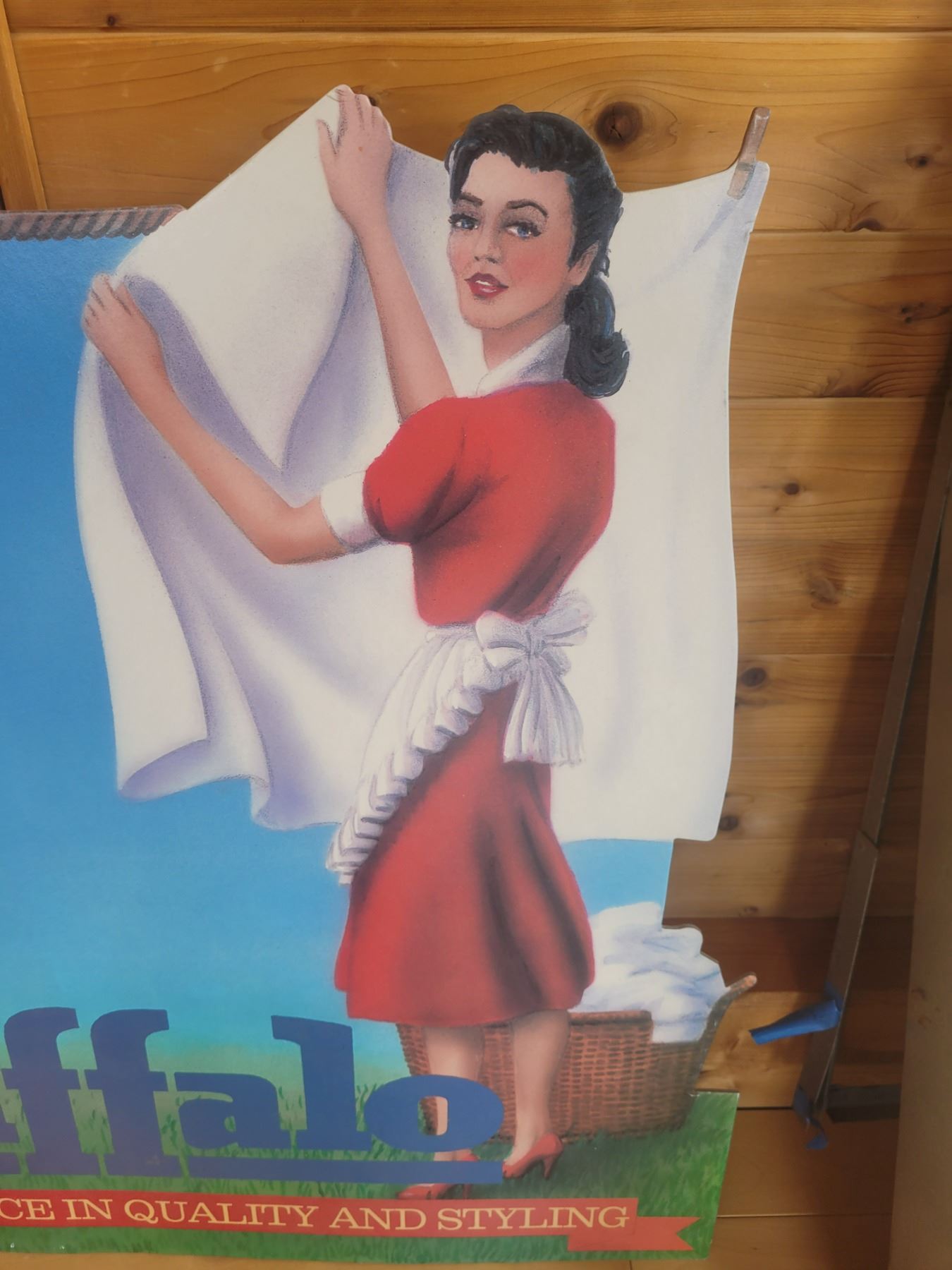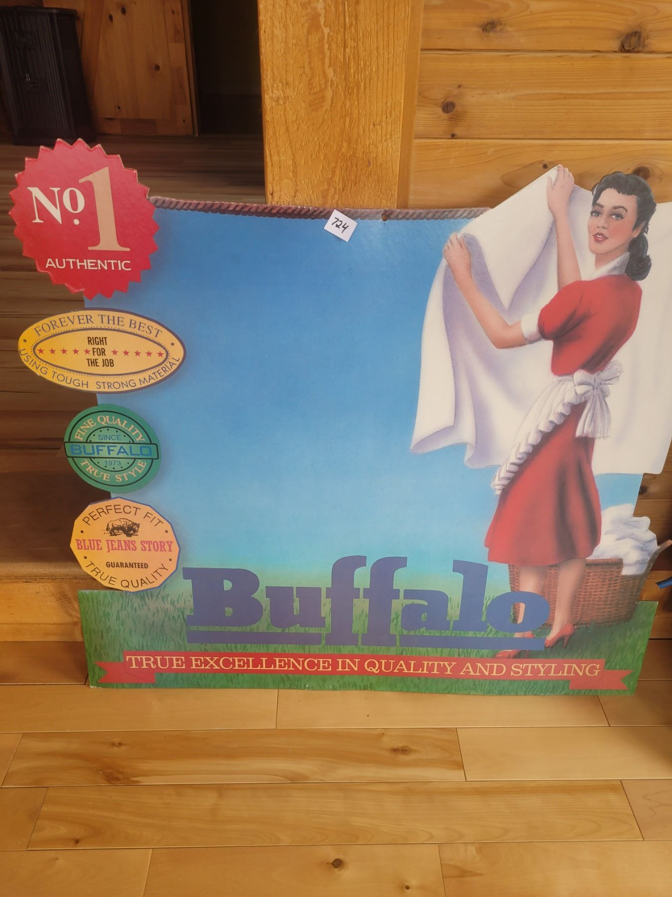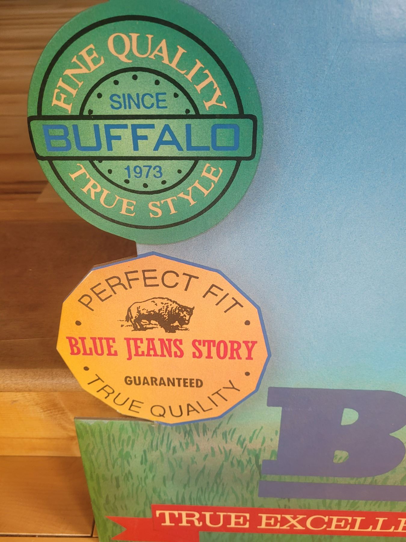 Early 70's Heavy cardboard advertising for Buffalo Blue Jeans Mint Condition Unused great graphics great color back flaps fold out to display 30 inches tall by 32 inches wide