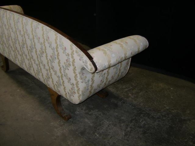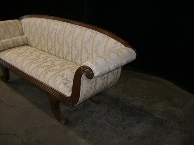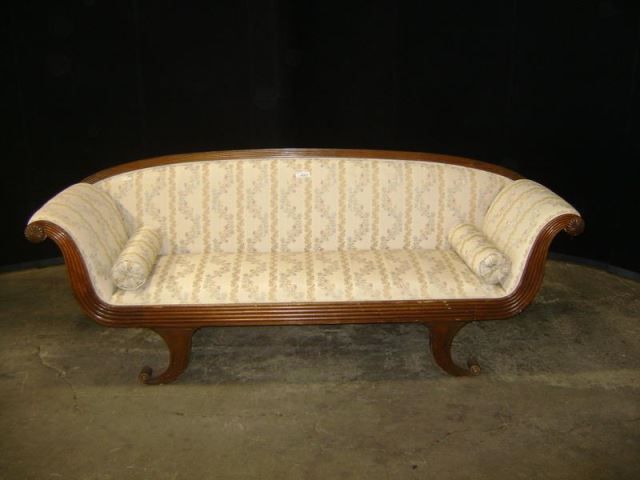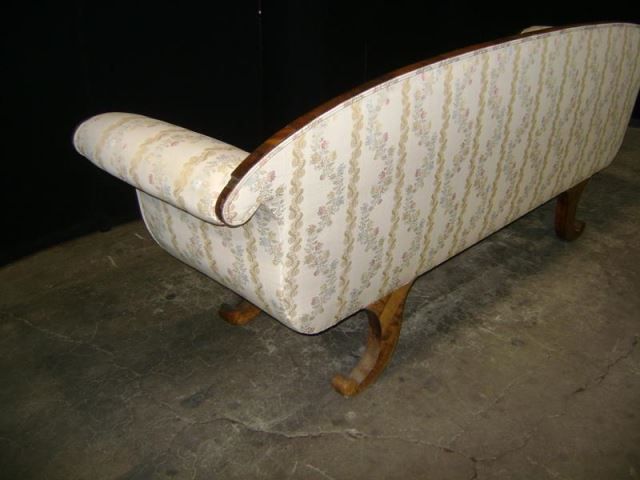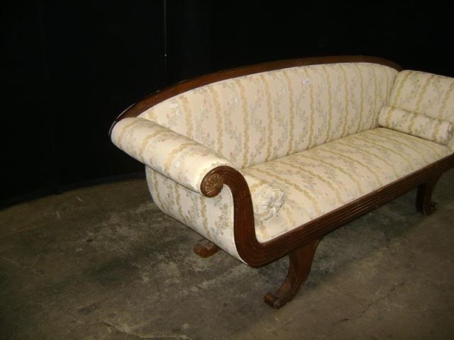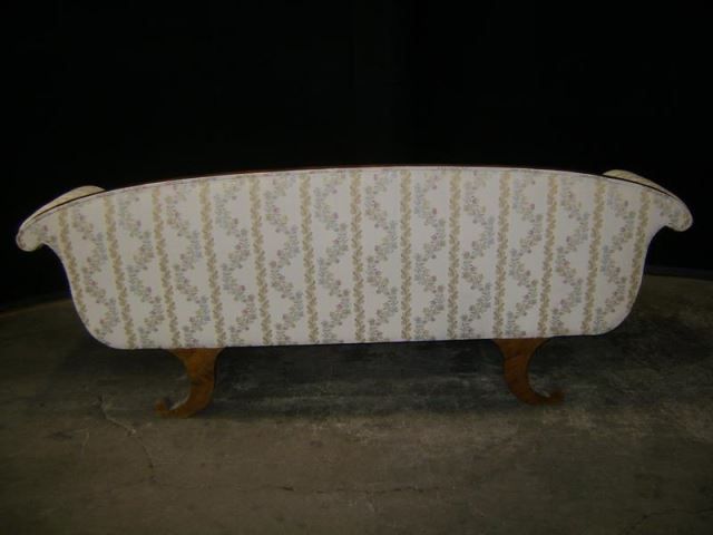 Early American Burled Walnut Provincial Style Cream Colored Upholstered Sofa
