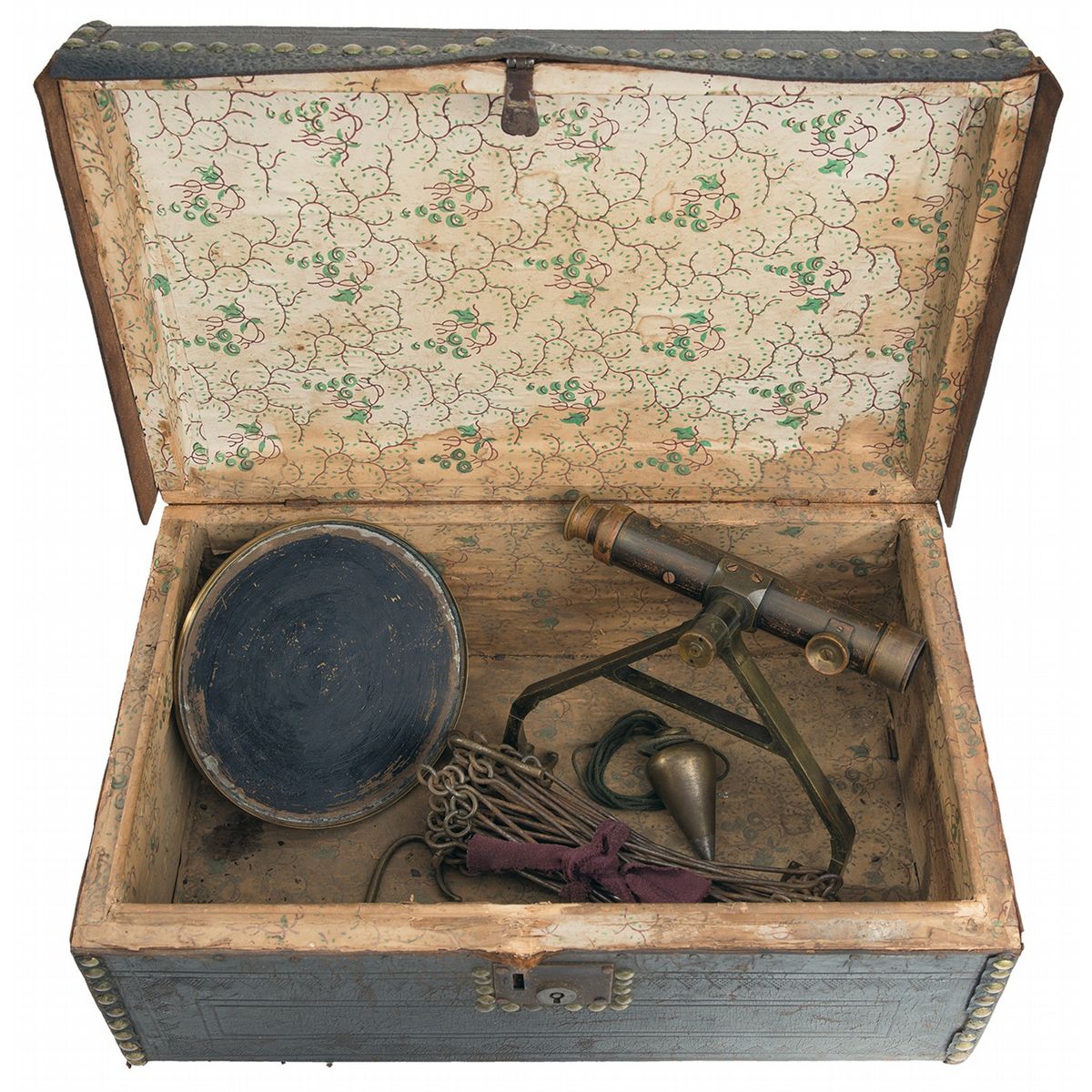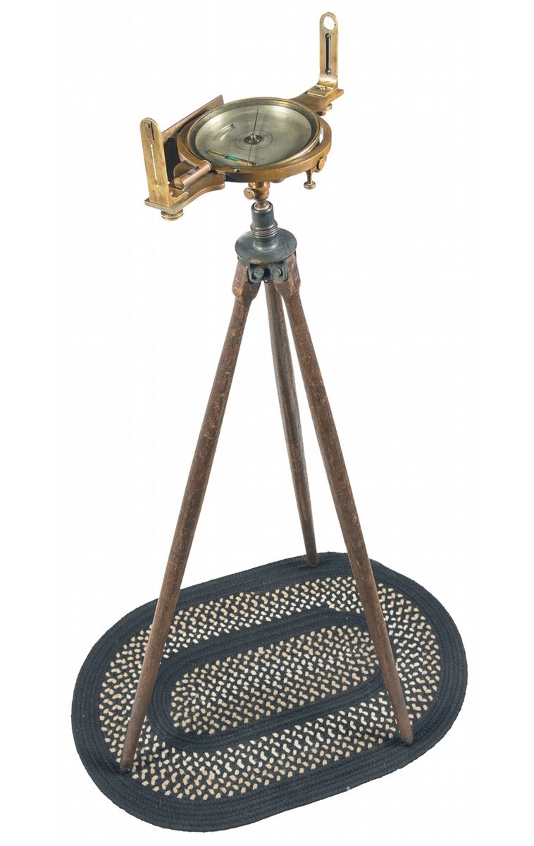 Early American Elevating Vernier Compass, a Complete Surveyor's Outfit