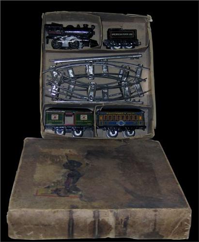 Very Early "American Flyer" cast iron and tin wind-up toy train in original box