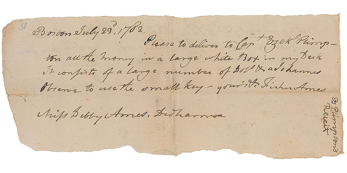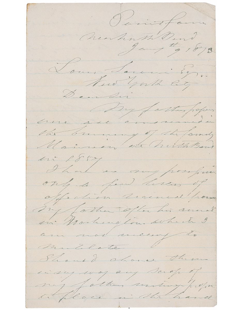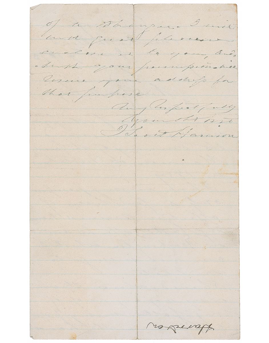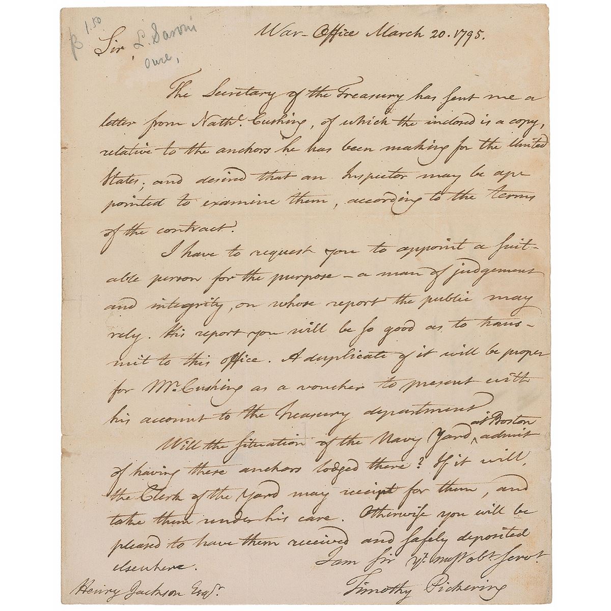 Collection of three ALSs, each by an early American politician, including: a 1782 letter by Federalist leader Fisher Ames, one page on a 8 x 3.25 slip; a 1795 letter by Secretary of State Timothy Pickering, one page on an 8 x 10 sheet; and an 1873 letter by Congressman John Scott Harrison, the son of President William Henry Harrison and the father of President Benjamin Harrison, one page both sides on a lightly lined 5 x 8 sheet. In overall very good condition.