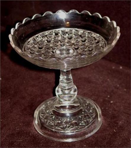 Early American Pressed Glass Compote, Daisy & Button. 6 tall, 6" dia.