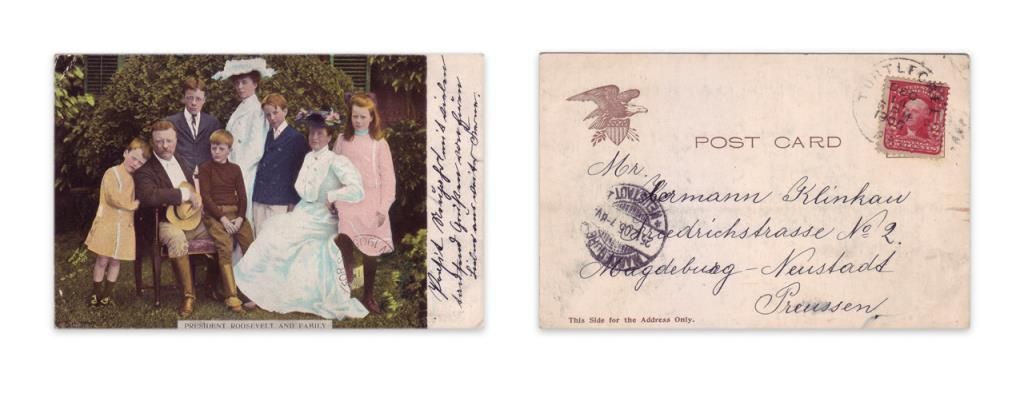 Early American color postcard of President Theodore Roosevelt and family, postmarked and stamped 1905. Est.: $20-$30.