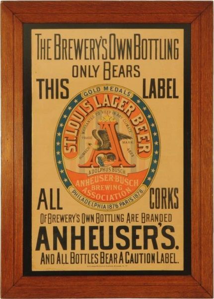 Circa 1890s pre-prohibition In Nice oak frame, Crump 5 Color Label Press, N.Y. Poster measures 26 1/2" x 42 1/4". Frame measures 37 1/2" x 52 1/4".