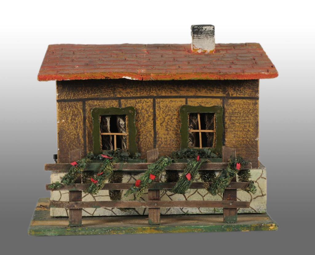 Circa 1920s. Hand-painted wood sides and wood platform. Extremely nice toy with full interior and opening door. Incredible excellent plus all original condition. Size 10" x 8".