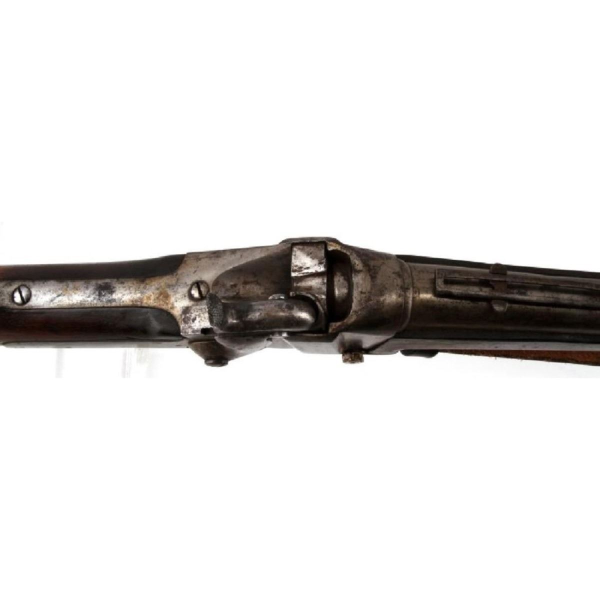Wood stocks, 40" round barrel, 6 grooved good clear bore, fixed front & ladder rear sight. Markings on top of barrel "5 36" & "Cyc". Unknown maker. Steel has mottled but smooth patina, case hardened to receiver. Replaced leather sling is attached. Brass butt & fitting to fore stock. Minor dings & wear. Overall good condition. Serial #: 536 9828-030818-LA-06189