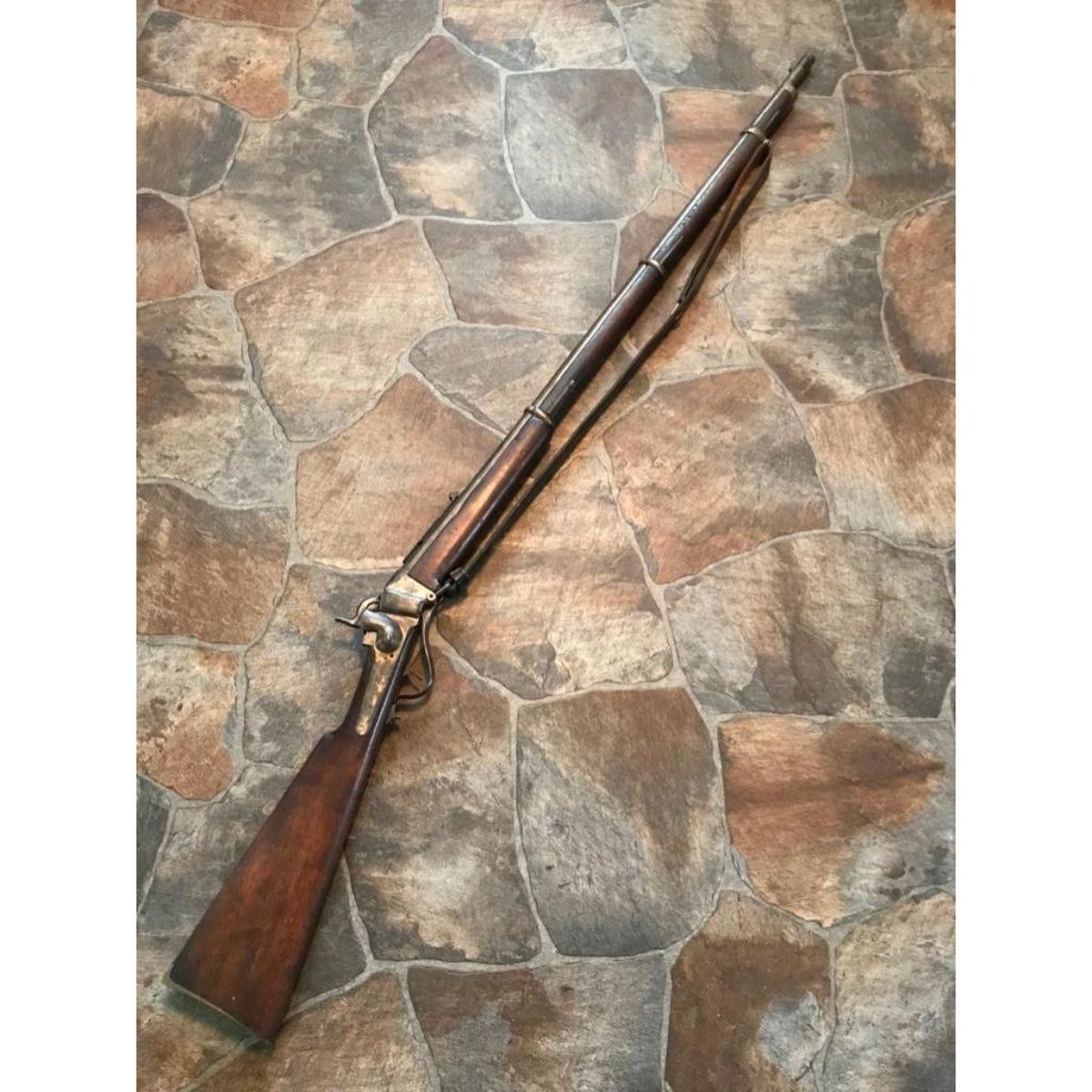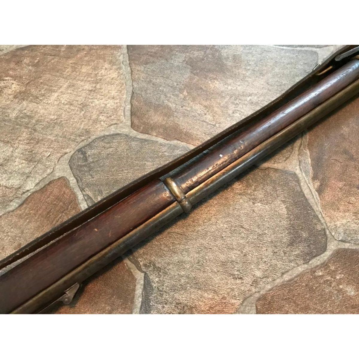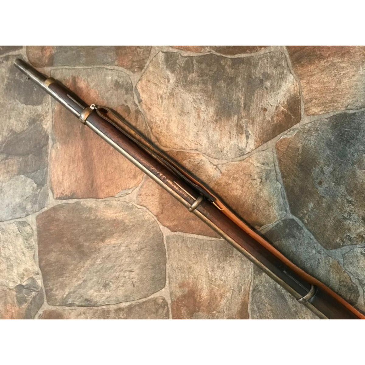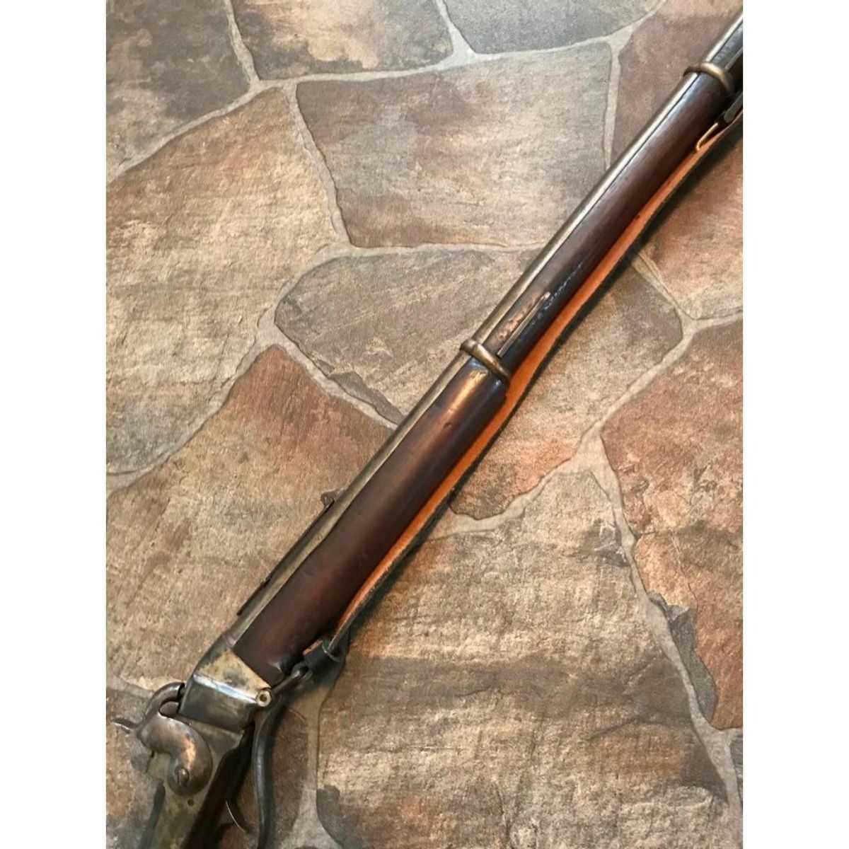 Wood stocks, 40" round barrel, 6 grooved good clear bore, fixed front & ladder rear sight. Markings on top of barrel "5 36" & "Cyc". Unknown maker. Steel has mottled but smooth patina, case hardened to a receiver. Replaced leather sling is attached. Brass butt & fitting to forestock. Minor dings & wear. Overall good condition. Serial #: 536 -9828-030818-LA-06189