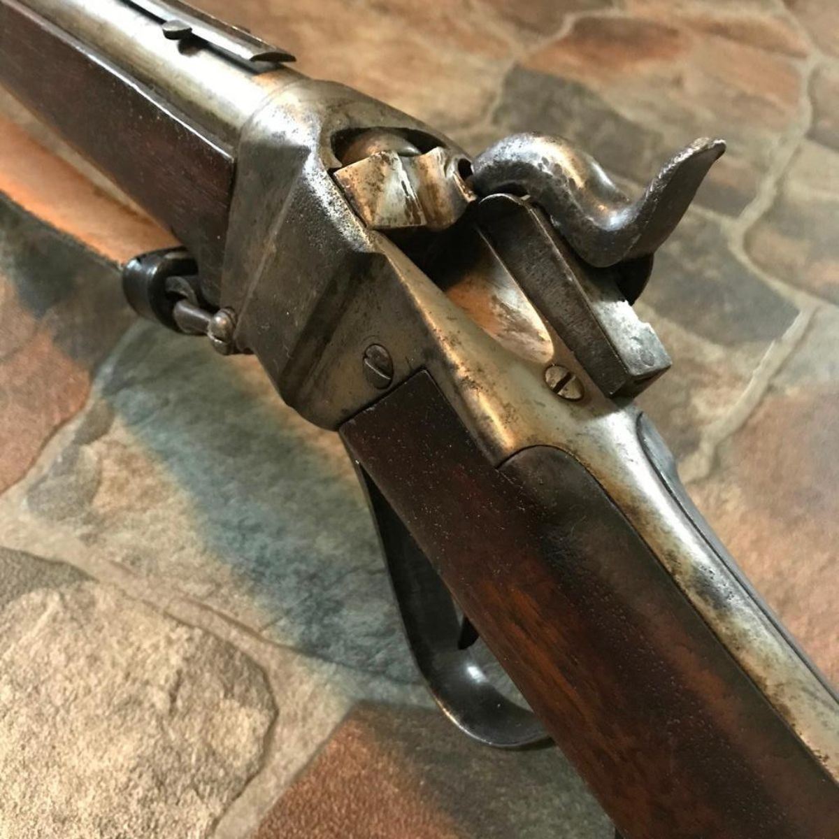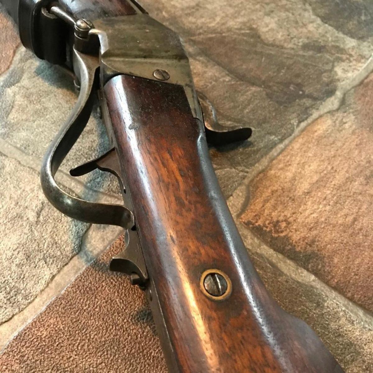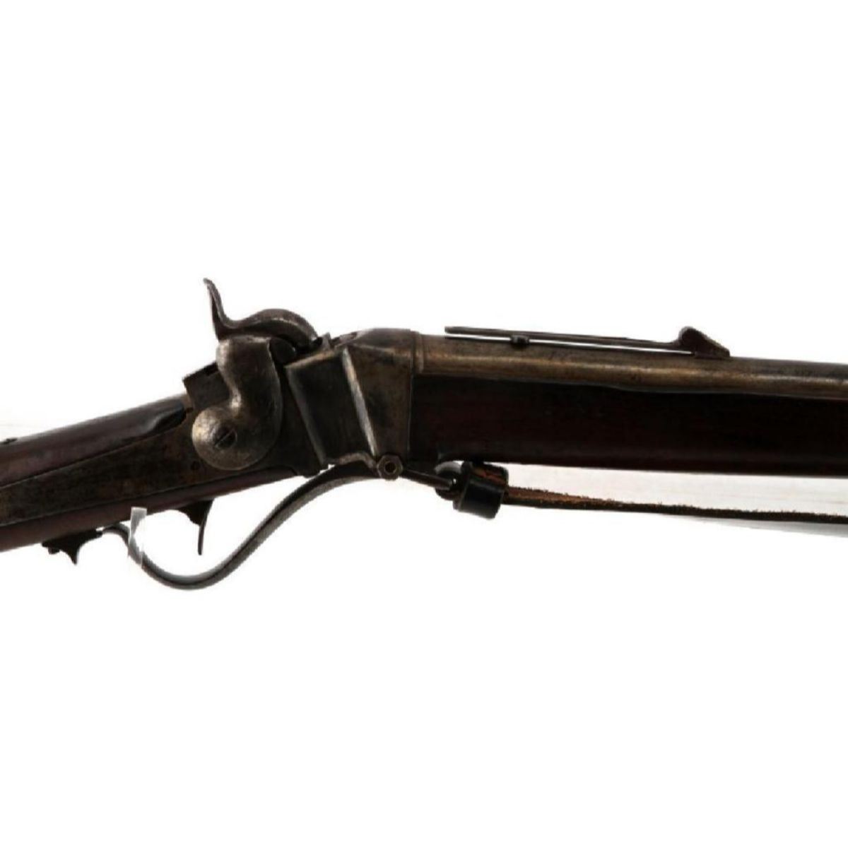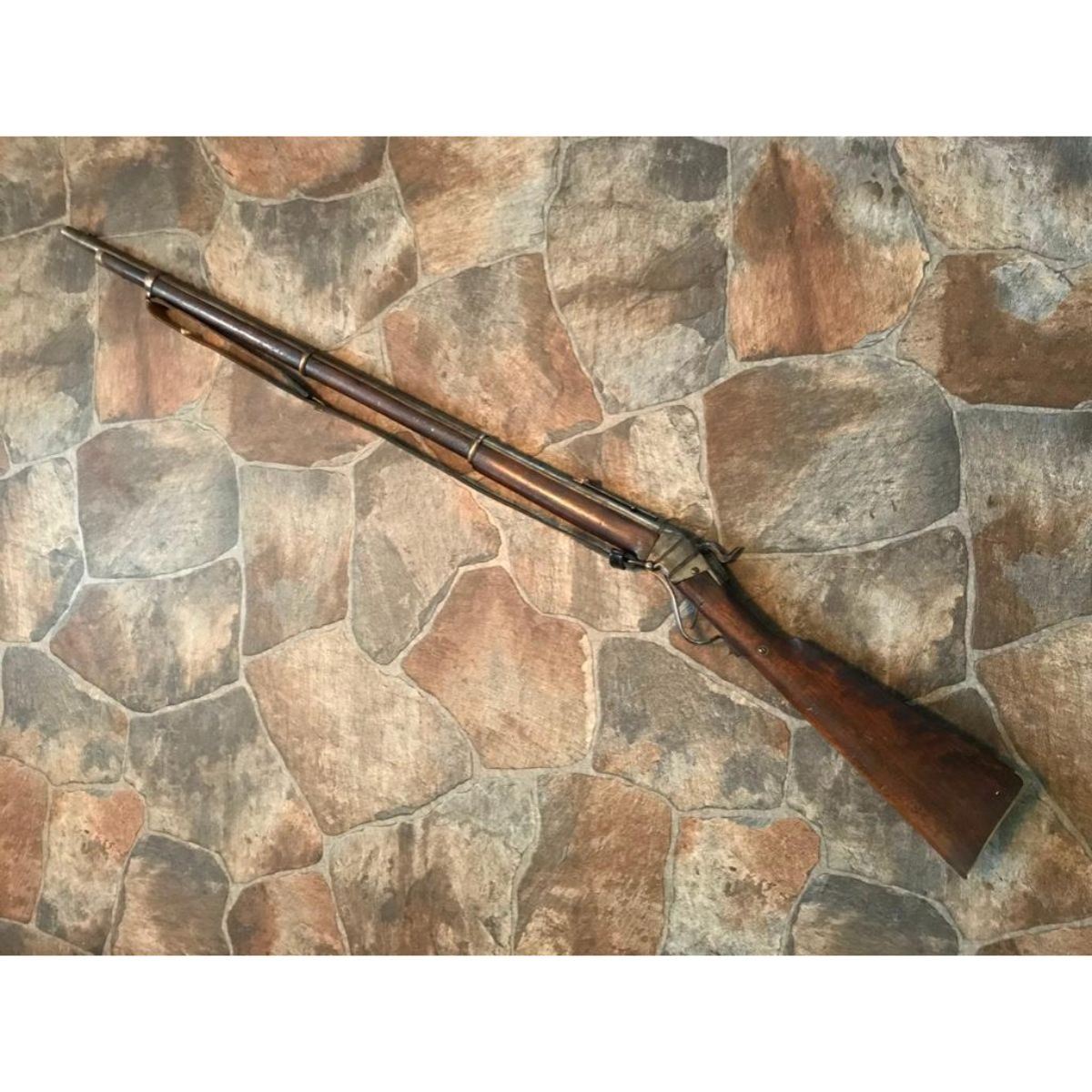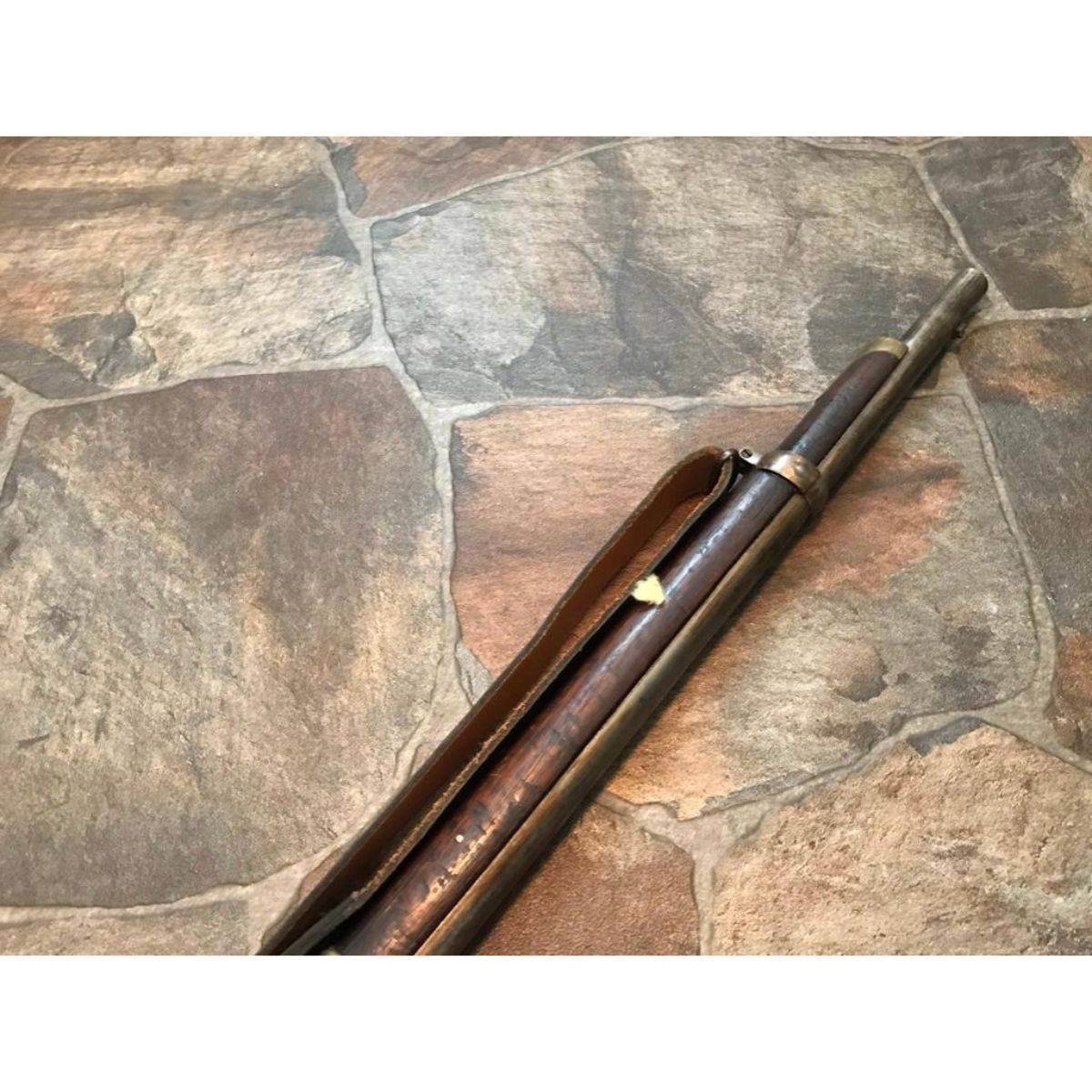 Wood stocks, 40" round barrel, 6 grooved good clear bore, fixed front & ladder rear sight. Markings on top of barrel "5 36" & "Cyc". Unknown maker. Steel has mottled but smooth patina, case hardened to a receiver. Replaced leather sling is attached. Brass butt & fitting to forestock. Minor dings & wear. Overall good condition. Serial #: 536 -9828-030818-LA-06189