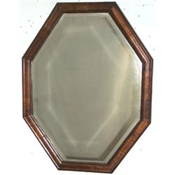 Early C18th walnut elongated octagonal framed wall mirror with bevelled plate, 31.4 by 24.5ins. (see illustration). £300/500