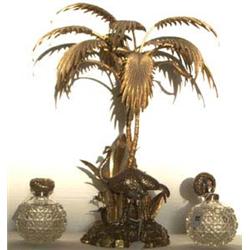 Early C20th gilt metal table lamp centrepiece modelled as palm trees & reeds with silver plated figure of an ostrich, on naturalistic base, 20.5ins. high (see illustration). Est.£120/180