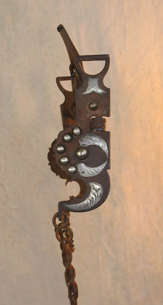 Interesting early California style spade bit with uncommon flat top rein rings.