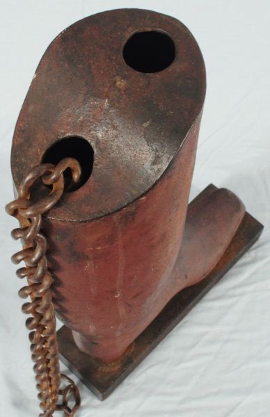 Very nice pleasing surface, with original hand-wrought hanging chain. On newer base. Measures 24" Tall.