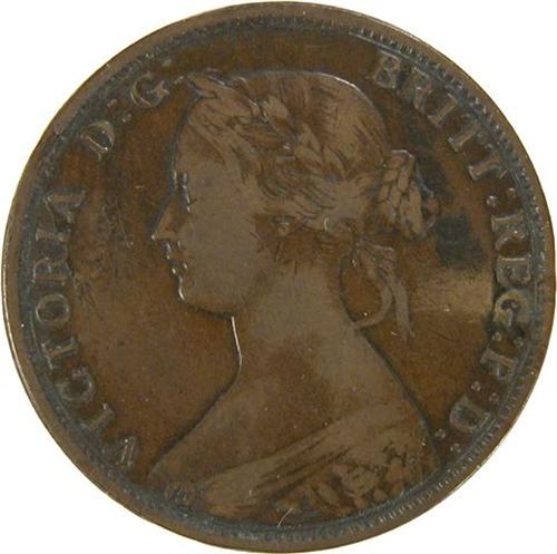 Large Cent Victoria of the Type used for 1861 to 1864 New Brunswick and Nova Scotia Cents, Early State Uncentered Brockage, F