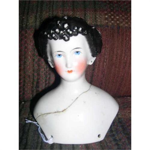 Early China Dagmar ( As Is).She has brush strokes around her face. Her ears are exposed. She has piereced ears. She has great facial paint. She is damaged as you can see but would be worth having restored or dressed as she is. Doll comes from a smoke free environment. Buyer to pay $20 for shipping, handling, and insurance. Thanks for viewing.