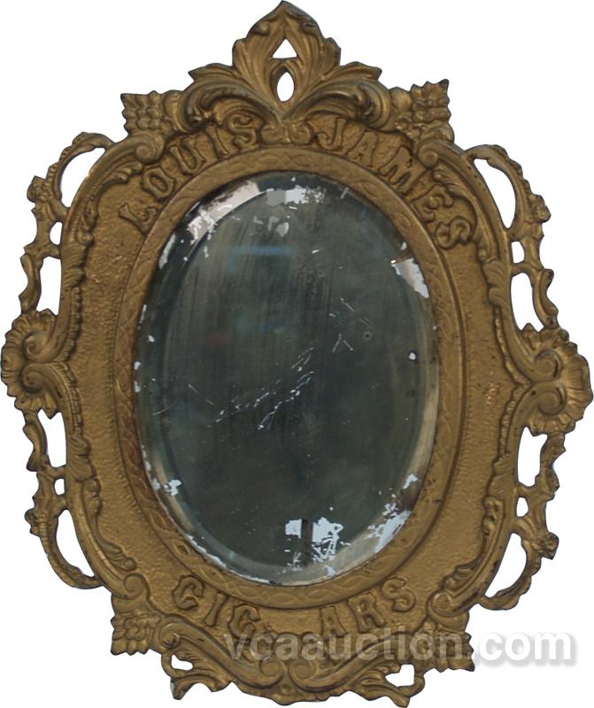 Early Cigar Store Countertop Cast-Iron Louis James Cigar Stand-Up Mirror