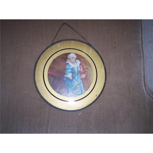 This antique flue cover is called Clara & Kitten.I purchased a number of old flue covers.All really darling.This has a light scratch like on the right lower side.These are all old ones I am listing,not the new ones that are out there.This measures 7" across.