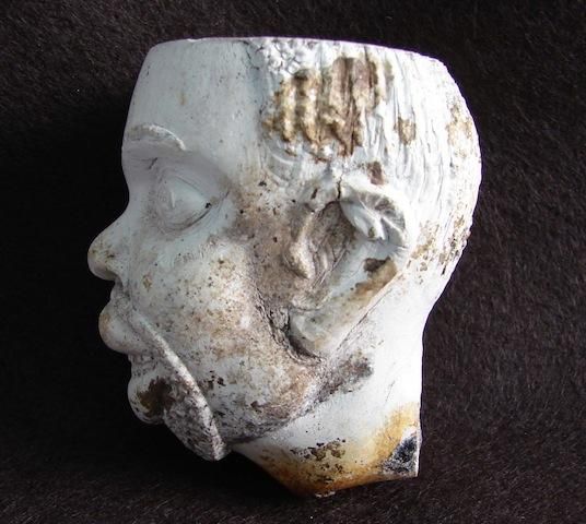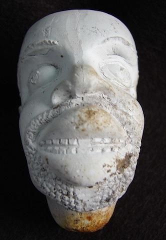Early Clay Pipe depicting the head of Southern Slave during the 1840 to 1860 period. This pipe was unearthed at a tavern site in South Carolina and were most probably cast in the south and given to bidders at the time slave sales were routine in and around Charleston Market. Measures 3 inches H mwf1534b