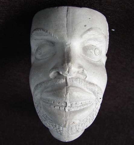 Early Clay Pipe depicting the head of Southern Slave during the 1840 to 1860 period. This pipe was unearthed at a tavern site in South Carolina and were most probably cast in the south and given to bidders at the time slave sales were routine in and around Charleston Market. Measures 6 inches L x 3 inches H, mwf1534a