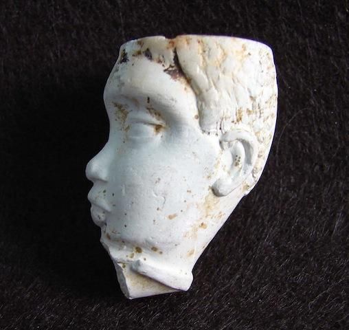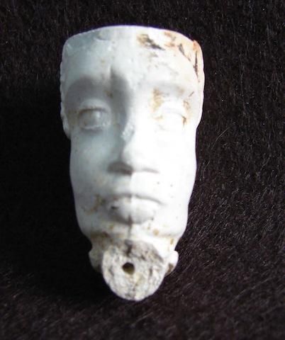Early Clay Pipe depicting the head of Southern Slave during the 1840 to 1860 period. This pipe was unearthed at a tavern site in South Carolina and were most probably cast in the south and given to bidders at the time slave sales were routine in and around Charleston Market. Measures 1.5 inches H mwf1534c
