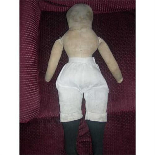 Early homemade Cloth doll. As is with very loved face no features, cotton stuffed with old pantloons. She is from a smoke free environment. Buyer to pay $15 for shipping, isurance and handing. Thanks for viewing.