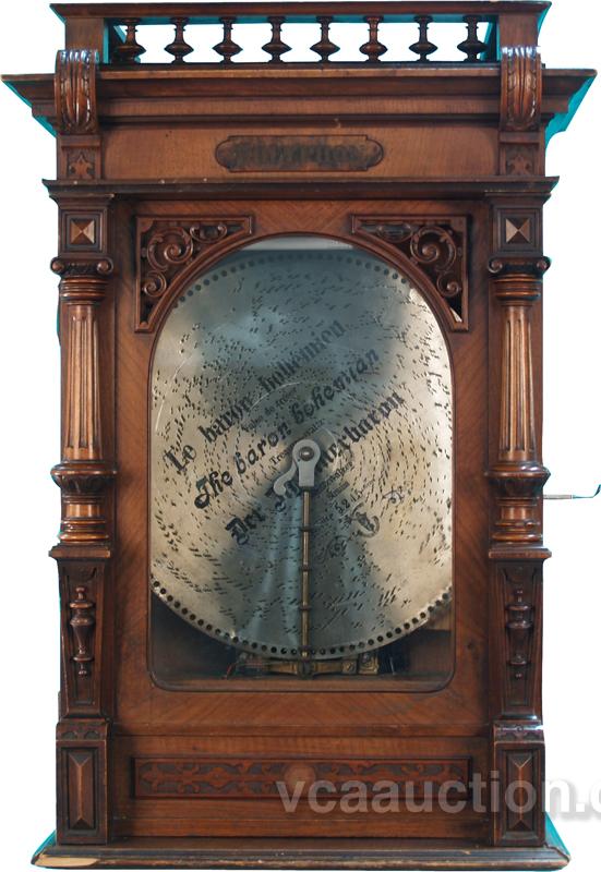 Early Coin-Op German Made Polyphon "Automaton" 19-5/8" Disc Player w/ 17 discs, has been electrified and comes with original hand crank and mechanism - 25" x 16" x 38" tall