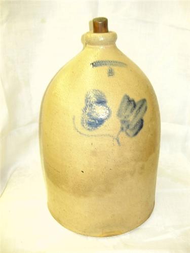 Clack & Van Aladall Cornwall, Ont, blue design jug with stopper, *noting: normal wear, measures 18 1/2" h