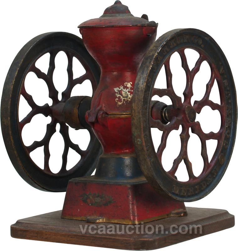Early Countertop Cast-Iron 2-Wheel The Cha's Parker Co.'s Coffee Grinder, all original