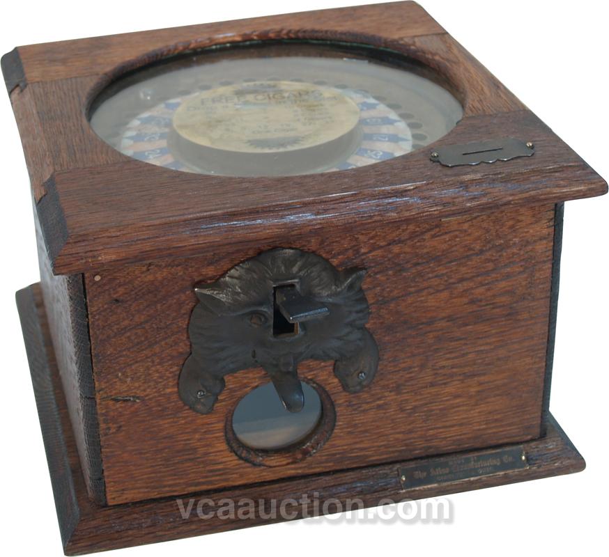 Early Countertop Coin-Op Wooden "Western Roulette" Trade Stimulator by The Atlas Manufacturing Co. Cincinnati, OHIO w/ keys