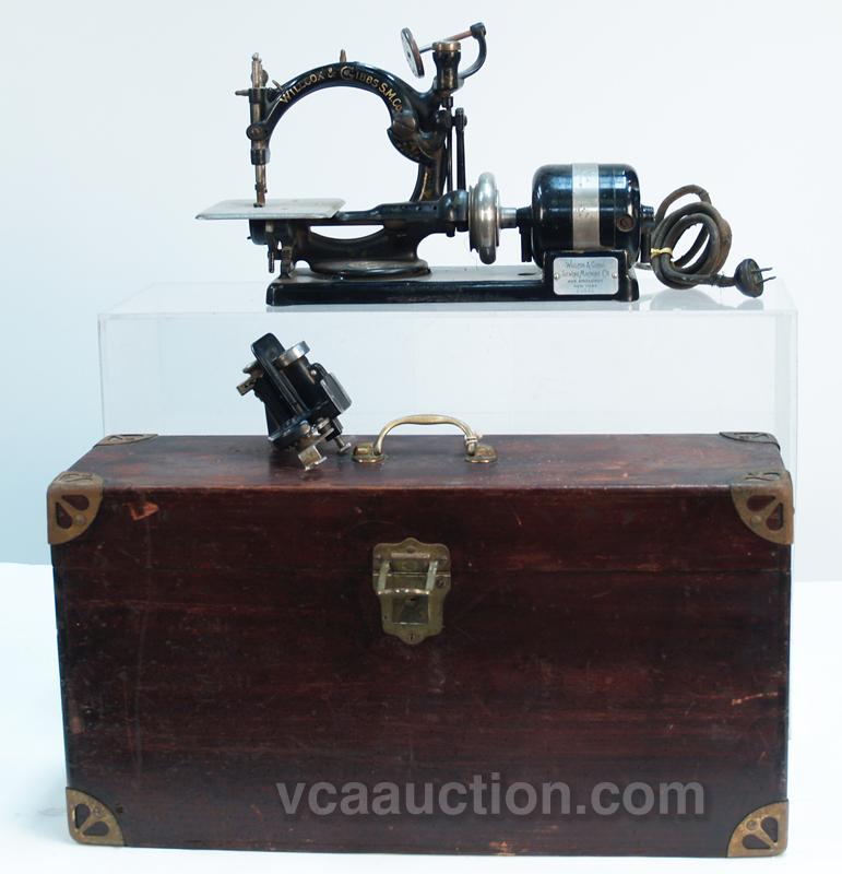 Early Countertop Wilcox & Gibbs Sewing Machine in wooden Corbin box