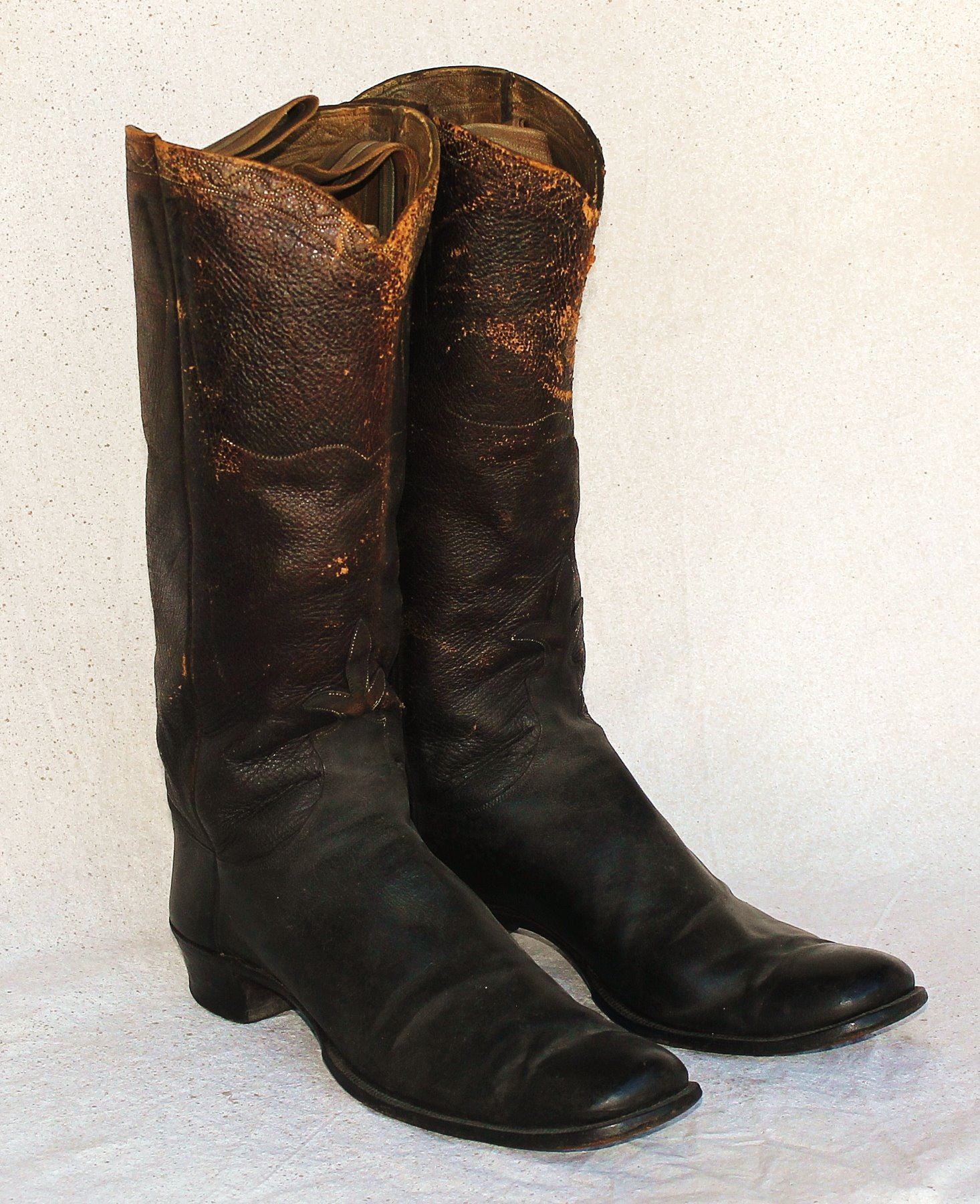 Late 1800's stove pipe boots with square toes 12" tops and cloth pulls.
