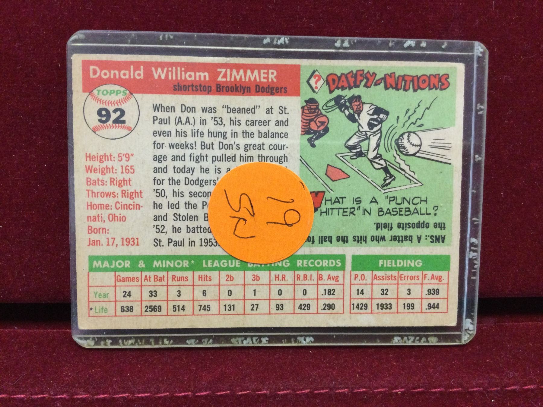 You are bidding on a early Brooklyn Dodgers Don Zimmer Baseball Card