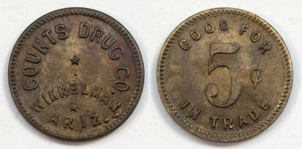 COUNTS DRUG CO. // 5¢ Brass - used around 1917