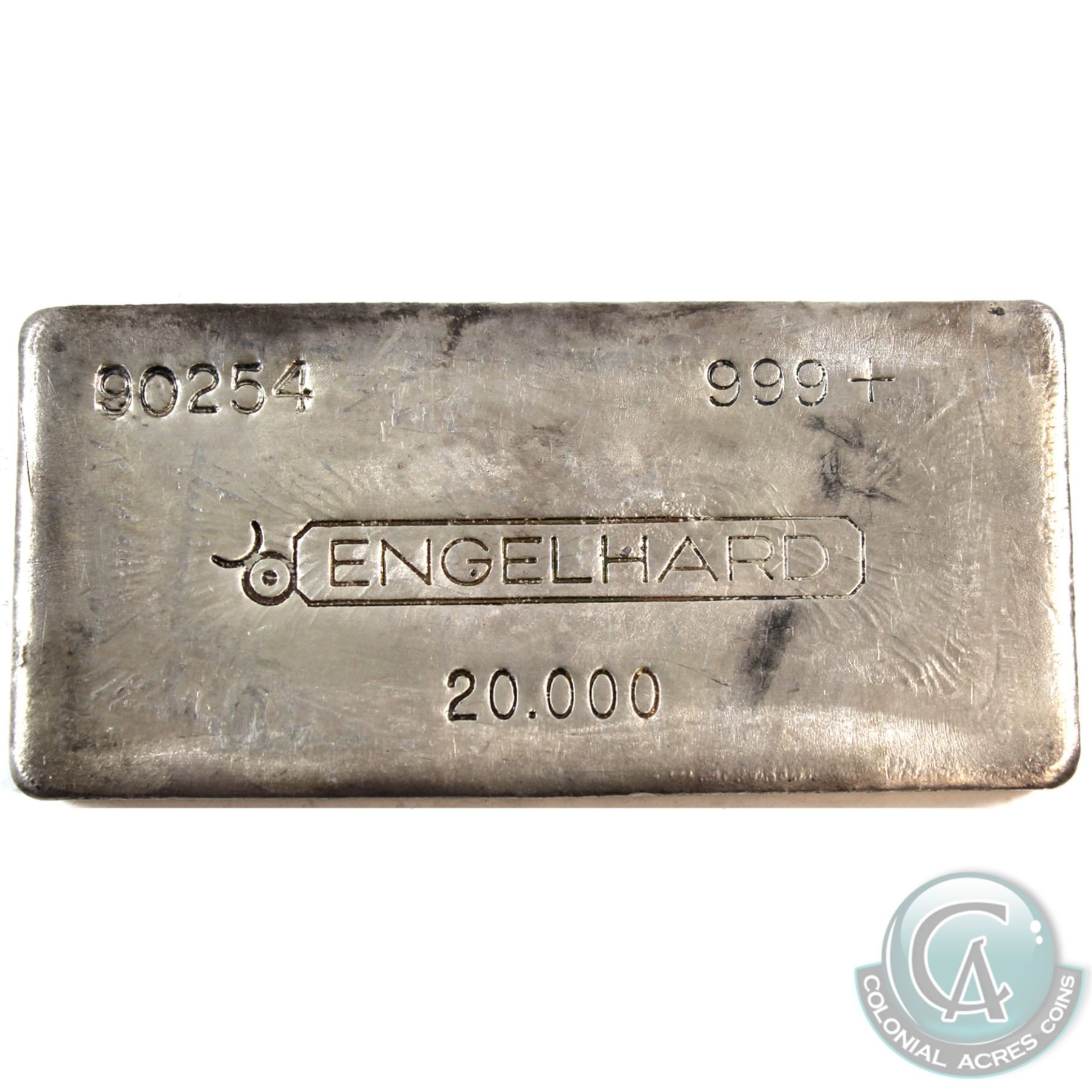 Early Engelhard 20oz Canadian Variation '3rd Series' Fine Silver Bar (TAX Exempt). 3rd Series 20oz ingot in Canadian variation. With ‘Bull Logo’ hallmark. Serial # 90254.