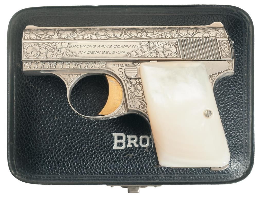 Early Engraved Belgium Baby Browning Vest Pocket Renaissance Semi-Automatic Pistol with Case