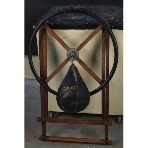 Early Everlast Boxing speed bag with oak wall bracket assembly