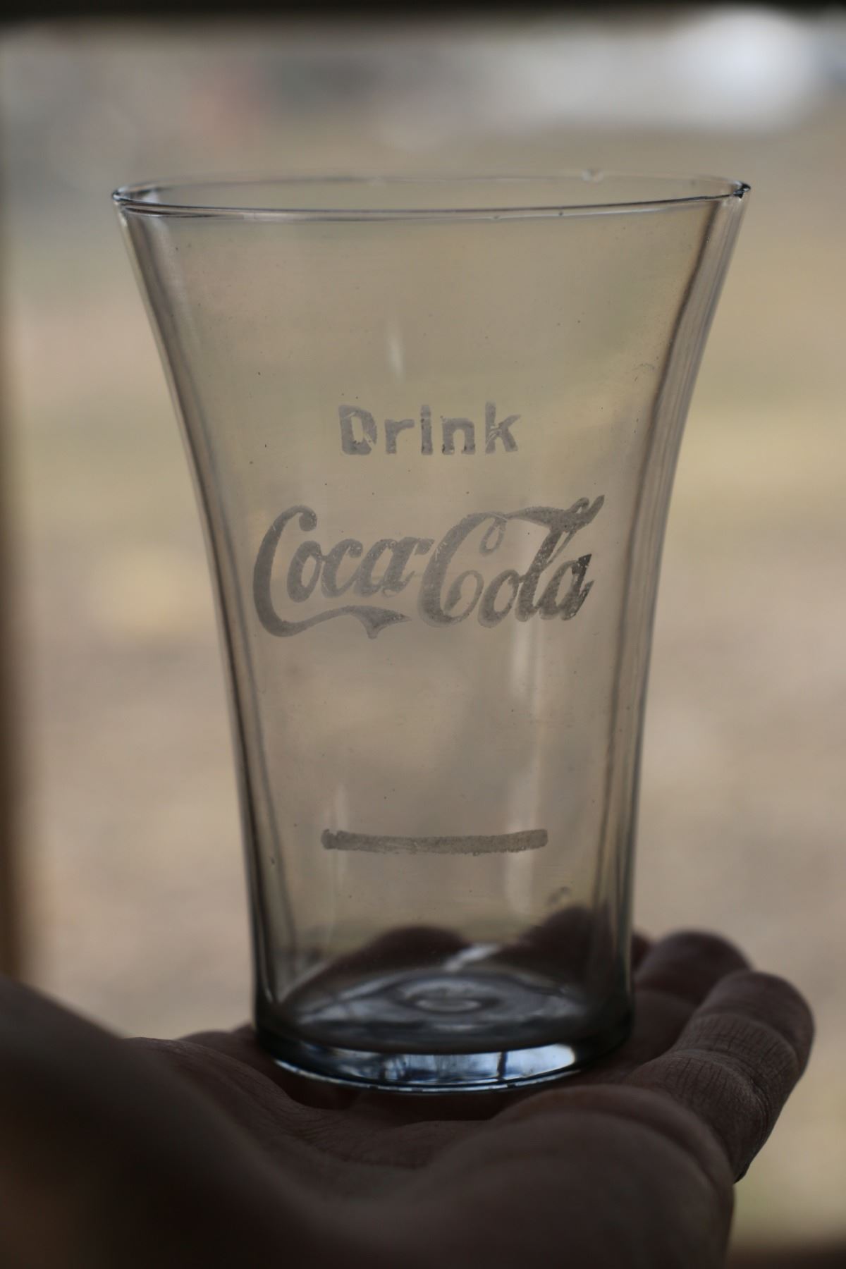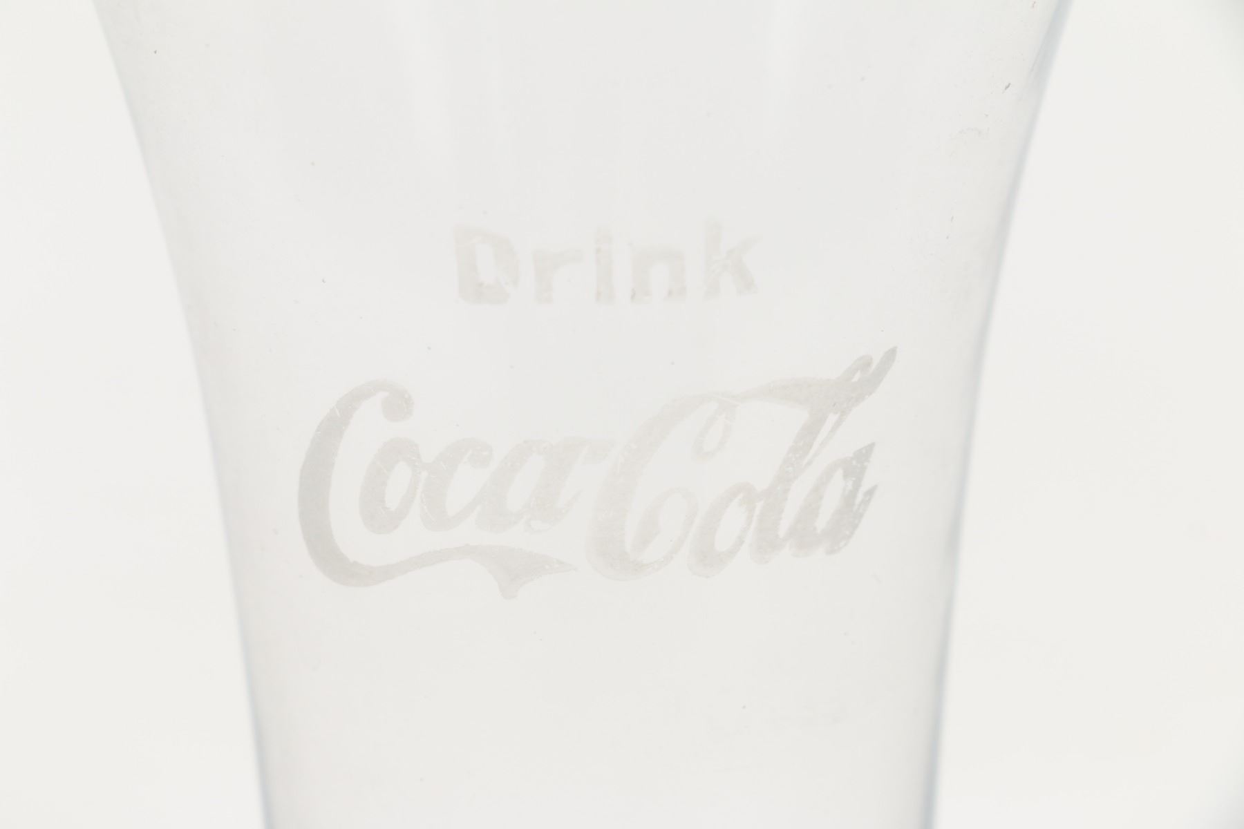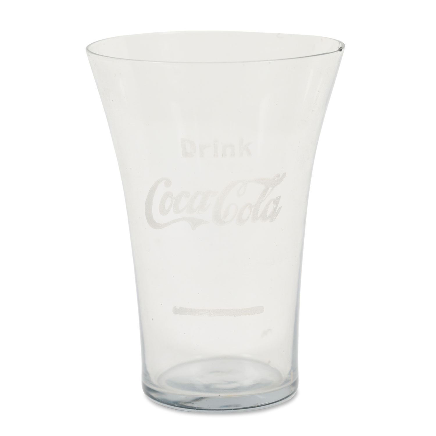 1914-1918 etched soda fountain glass. Scarce. 4.25" x 3". Minor rim flea bites. $200-300.