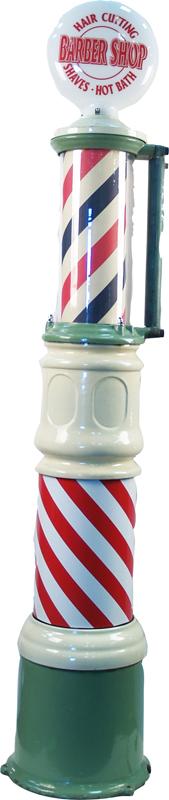 Early Floor Model Porcelain Barber Shop Pole c1920's w/ "BARBER SHOP - Hair Cutting - Shaves - Hot Bath" milk glass globe
