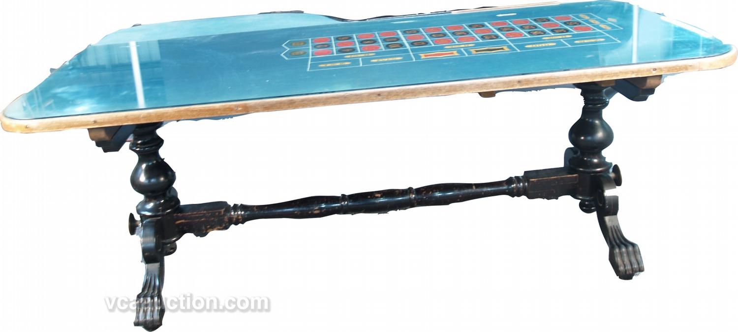 Early Floor Model Roulette Table w/ wood band around green felt w/ claw feet