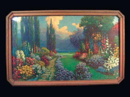 Early Fox Like Print in original frame. Depicting garden path. Frame in fair condition, print in excellent condition. 33 1/2 X 18 1/2 inc frame.